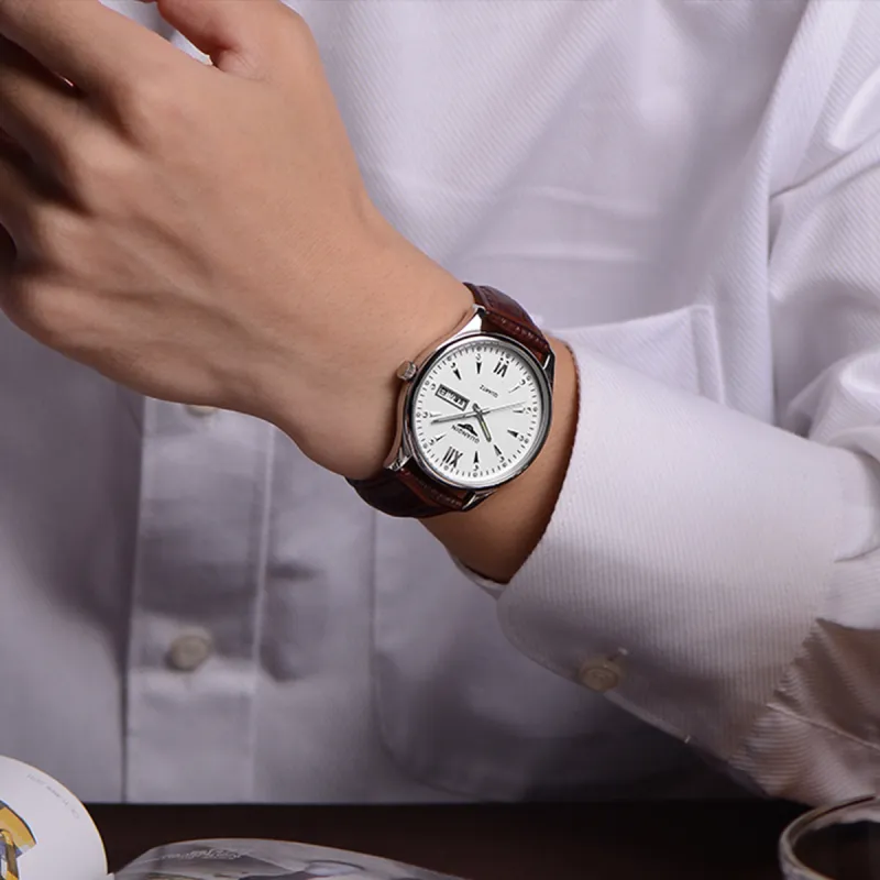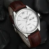 Циферблат Цвет:Белый корпус, белый циферблат, коричневая кожа