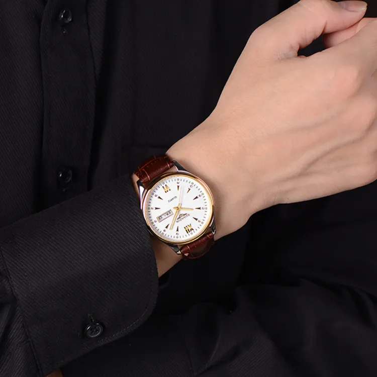 Золото Белый Циферблат Коричневая Кожа