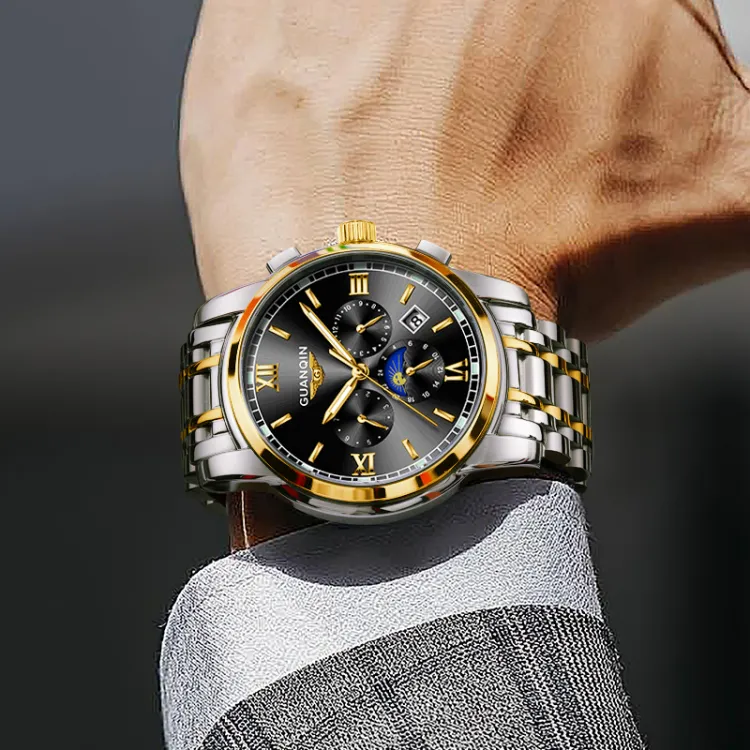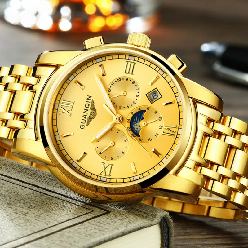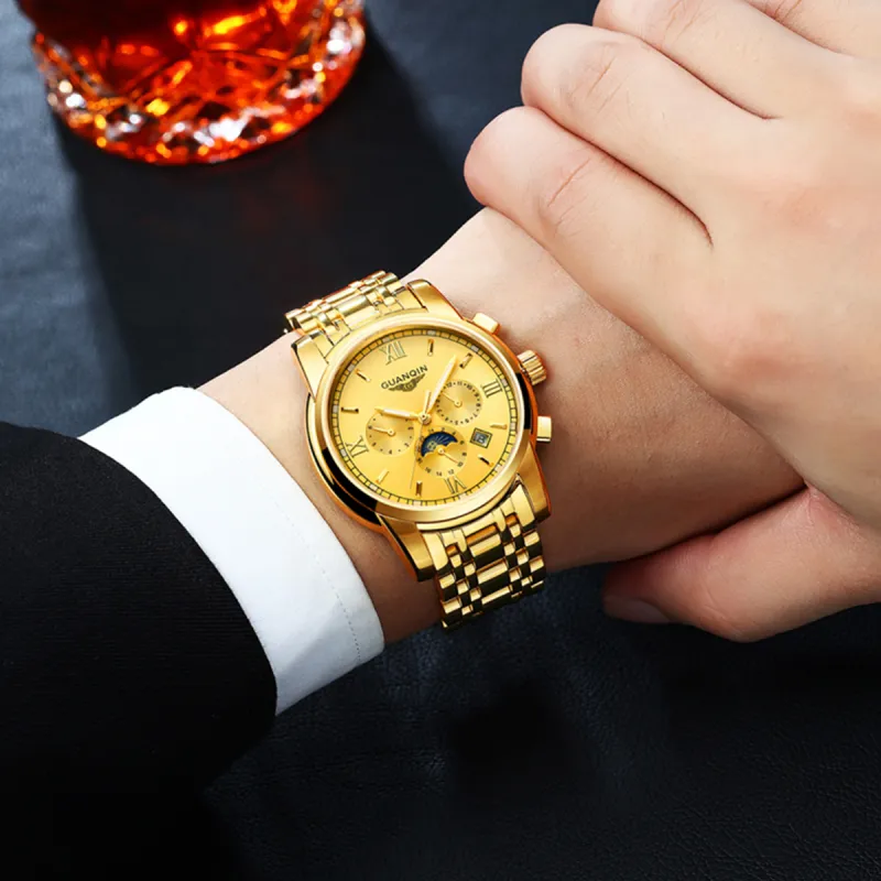 GUANQIN GJ16040.JGD Механический механизм ремешок из нержавеющей стали мужские часы белый циферблат