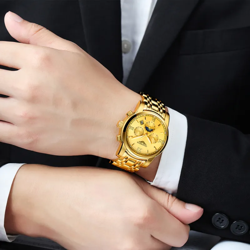 Циферблат Цвет:Золотой корпус, золотой циферблат, золотой стальной браслет