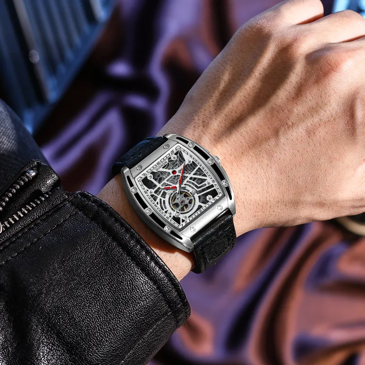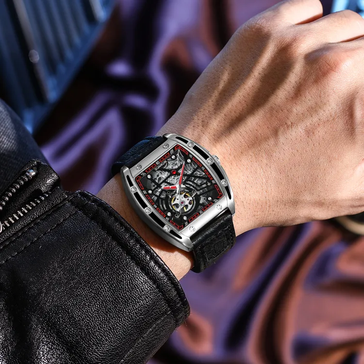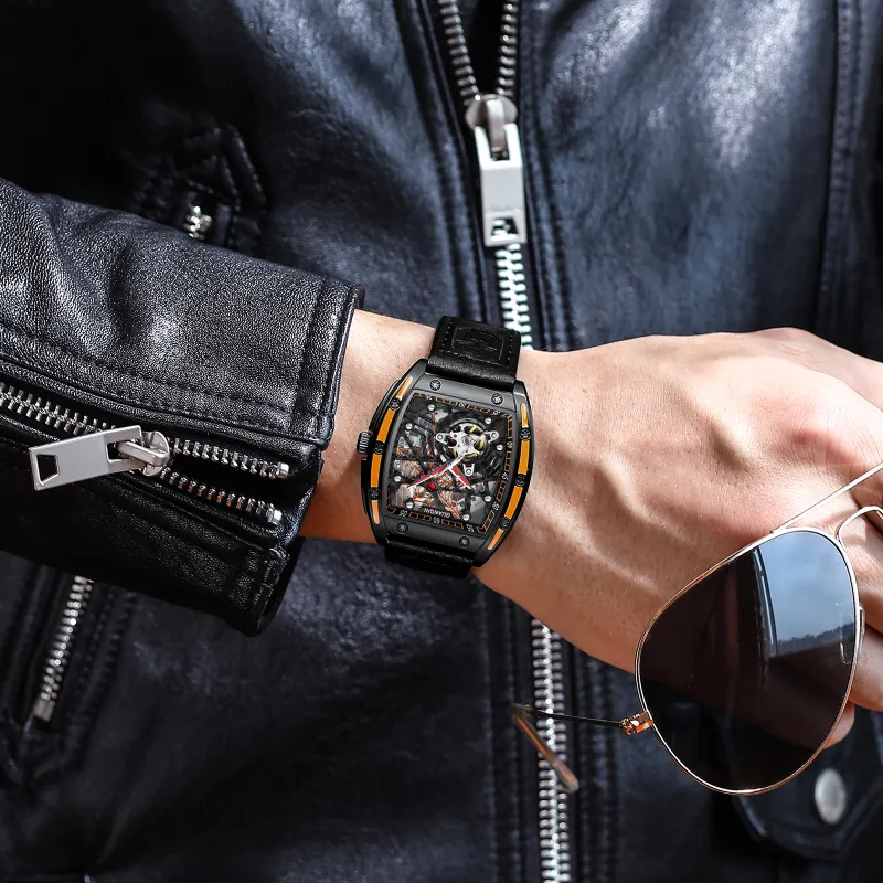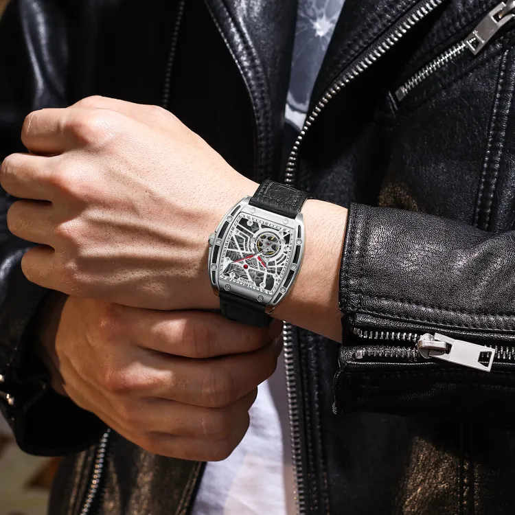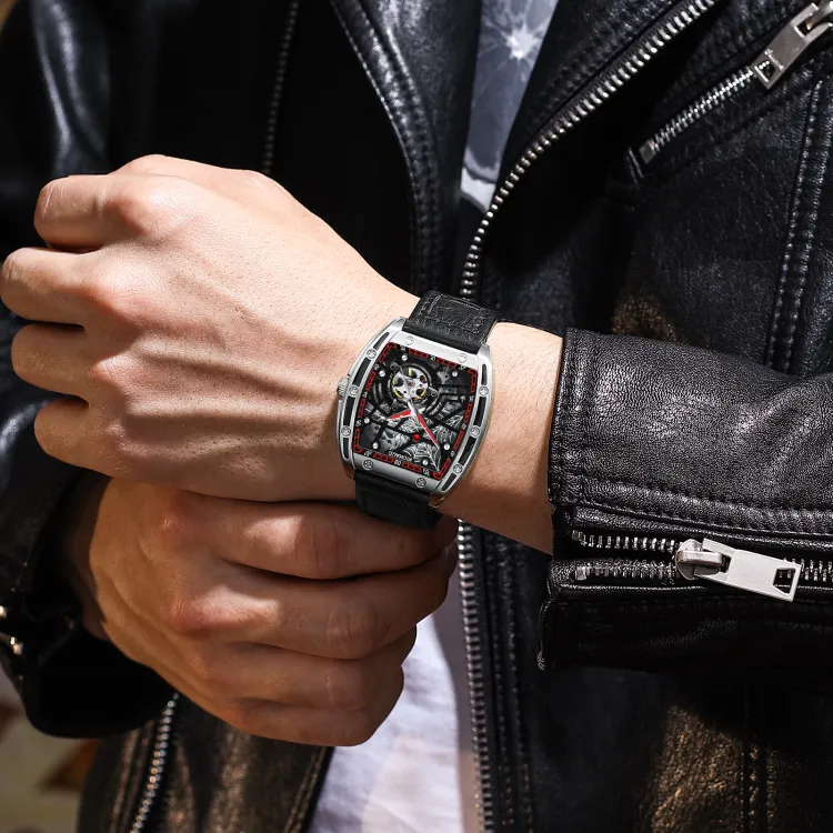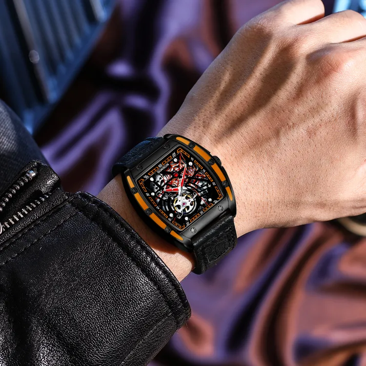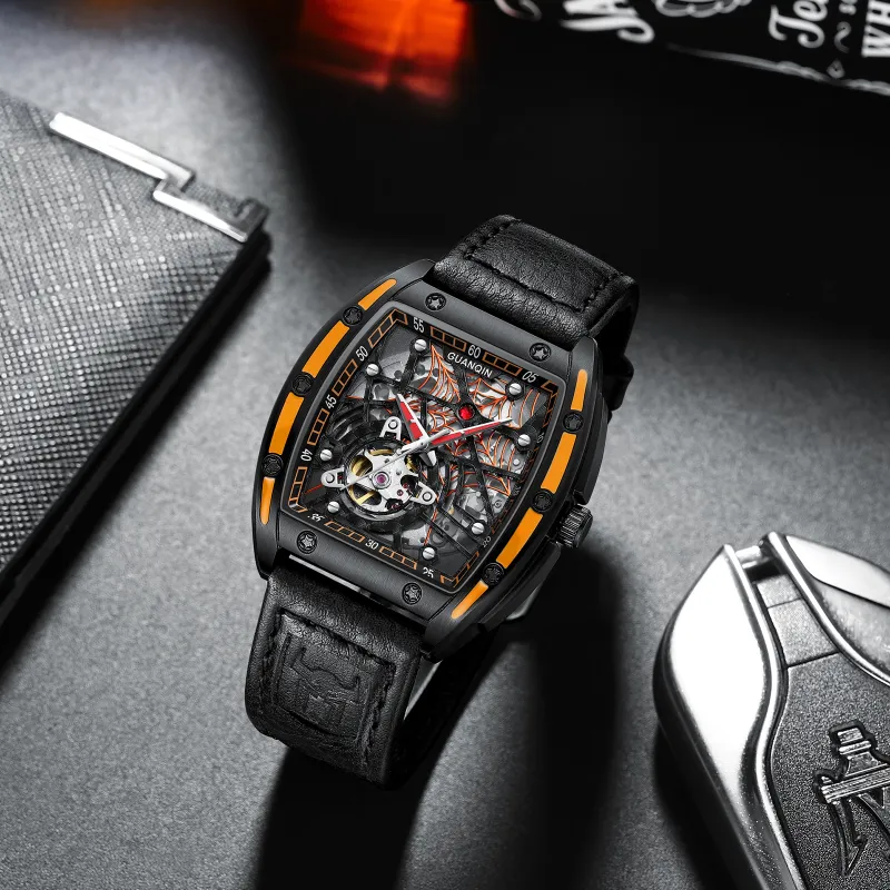 GUANQIN GJ16203 Механический механизм Резиновый ремешок Часы Мужские Часы С открытым механизмом
