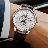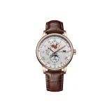 Коричневая кожа, розовый корпус, белый циферблат