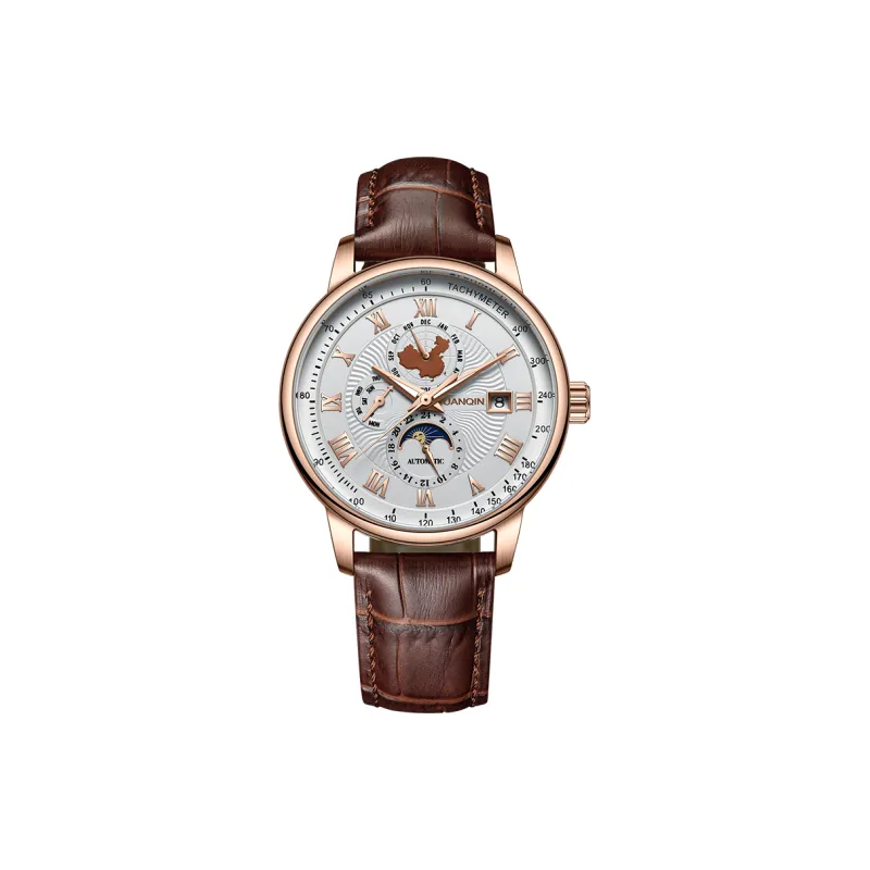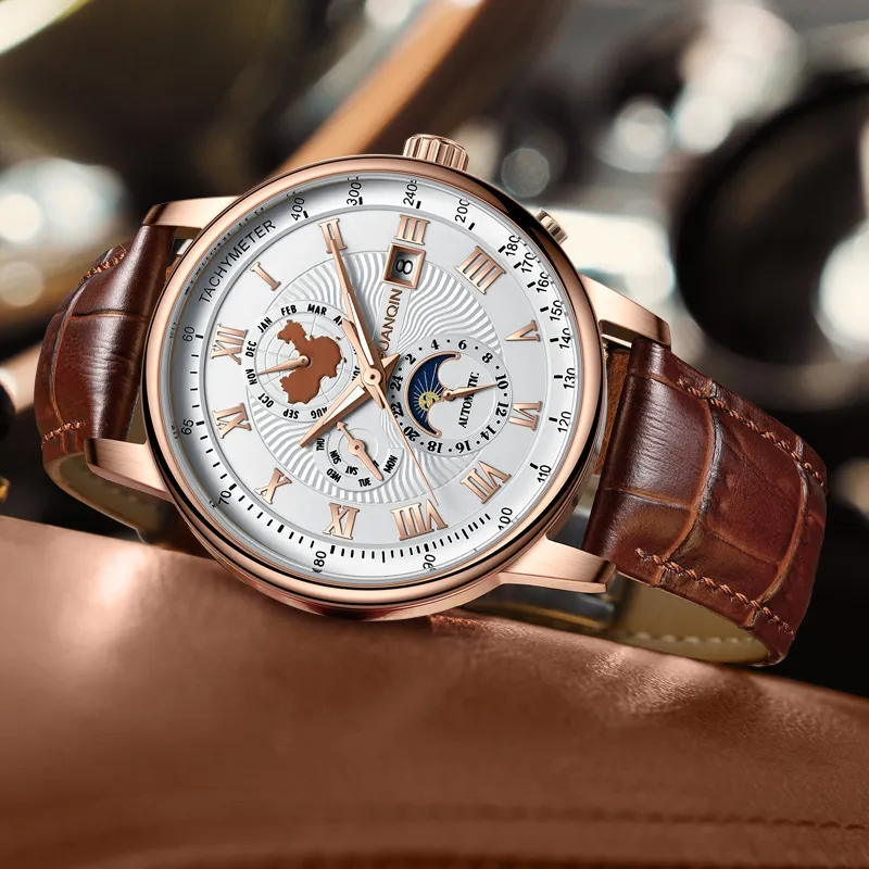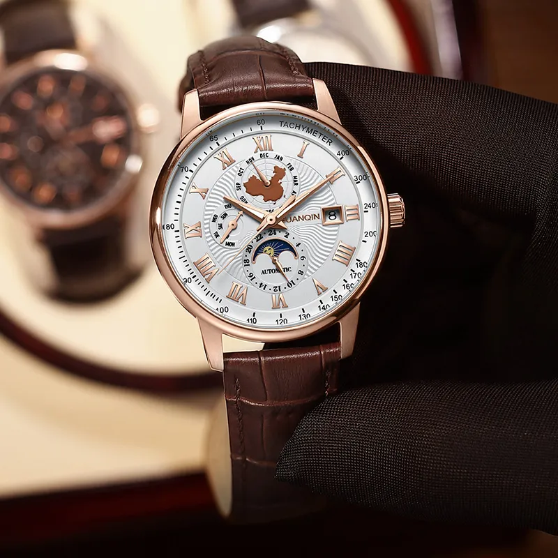 GUANQIN GJ16232.MPD Автоматический механический механизм натуральная кожа ремень часы для мужчин белый циферблат
