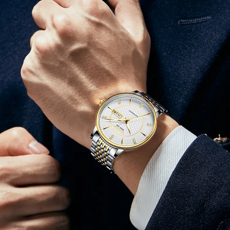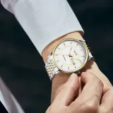 Циферблат Цвет:Золотой белый циферблат, стальной браслет.