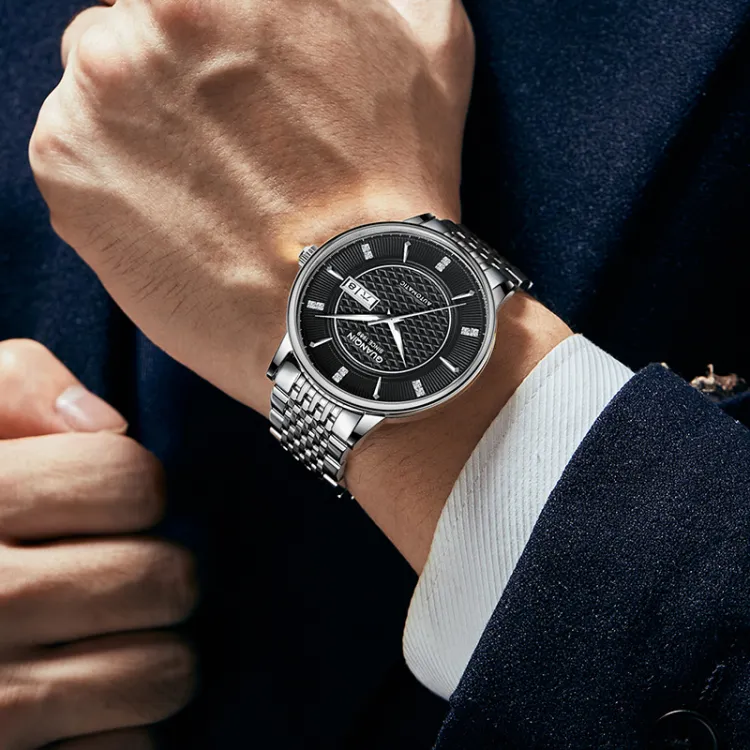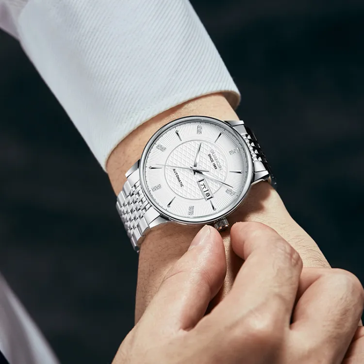 GUANQIN GJ16298 Автоматический Механический Механизм Нержавеющая Сталь Ремешок Часы Мужские Черный Циферблат