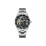 Черный корпус, черный циферблат, стальной ремешок