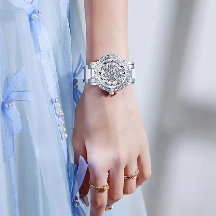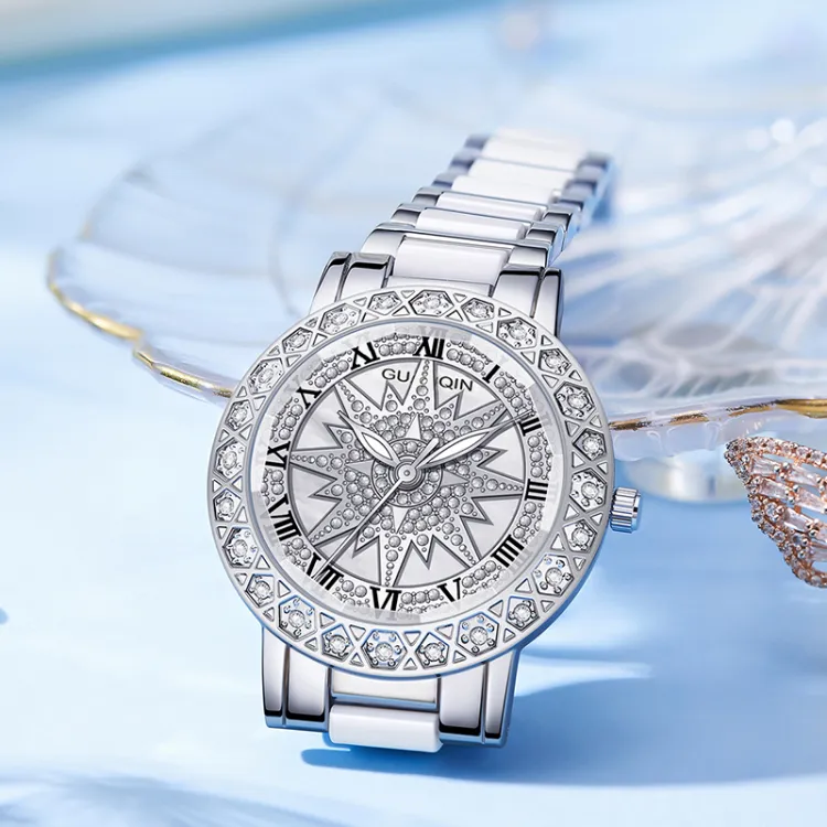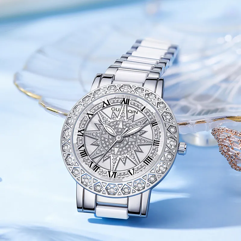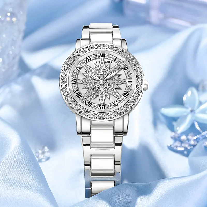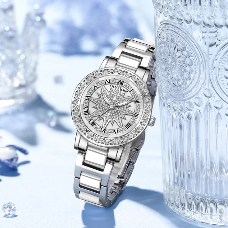 GUANQIN Кварцевый механизм металлический ремешок женские часы серебристый циферблат