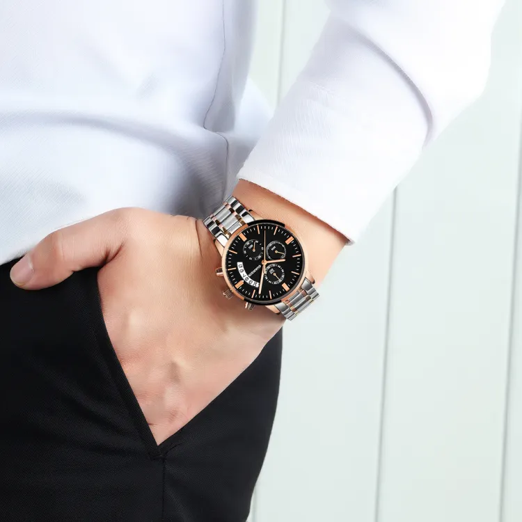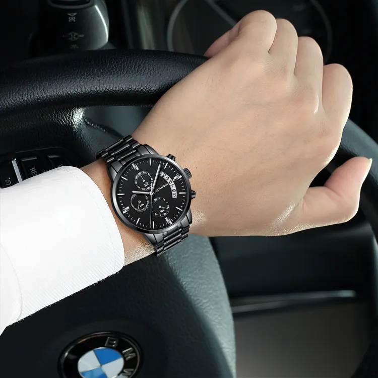 GUANQIN Кварцевый механизм ремешок из нержавеющей стали мужские часы белый циферблат