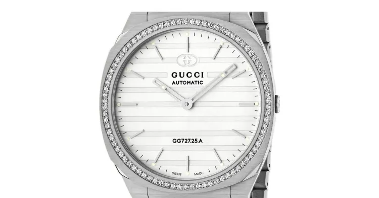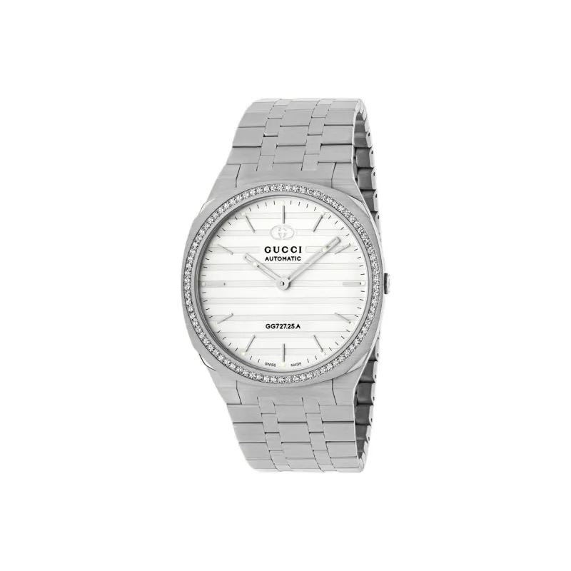 GUCCI 25H Часы Автоматический Механический Механизм Нержавеющая Сталь Ремешок Белый Циферблат Мужской