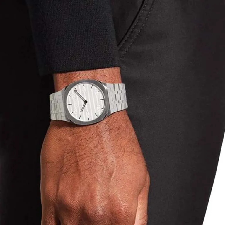 GUCCI 25H Collection Кварцевые часы механизм ремешок из нержавеющей стали 38 мм серебристый циферблат унисекс