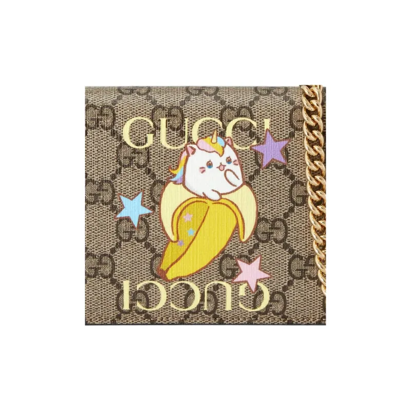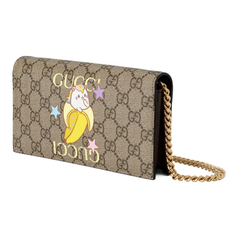 GUCCI Bananya Банан Meow Коллаборация Холст Сумка с цепочкой Сумка через плечо Кошелек Женские Бежевый Эбеновый