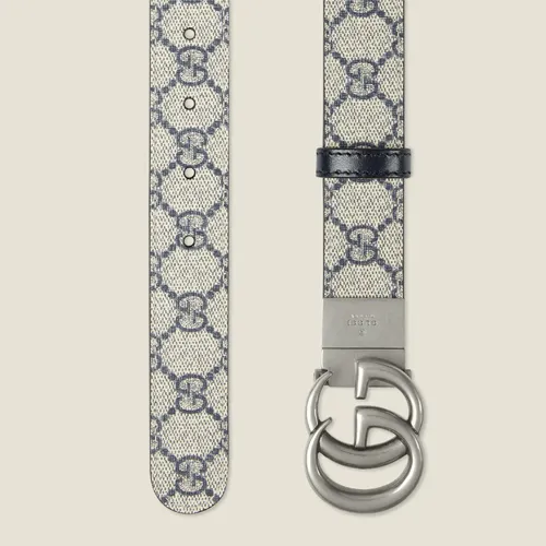 GUCCI Canvas Кожаные ремни Мужской Бежевый Синий Ширина 3 см
