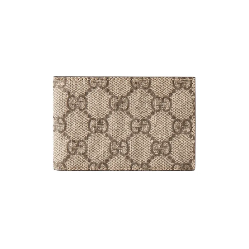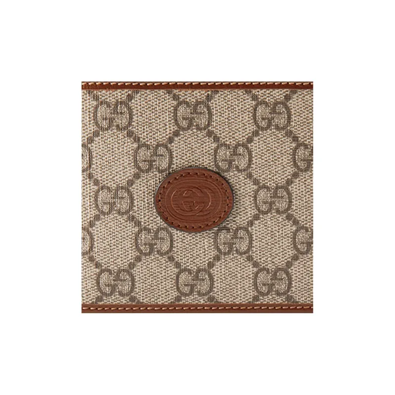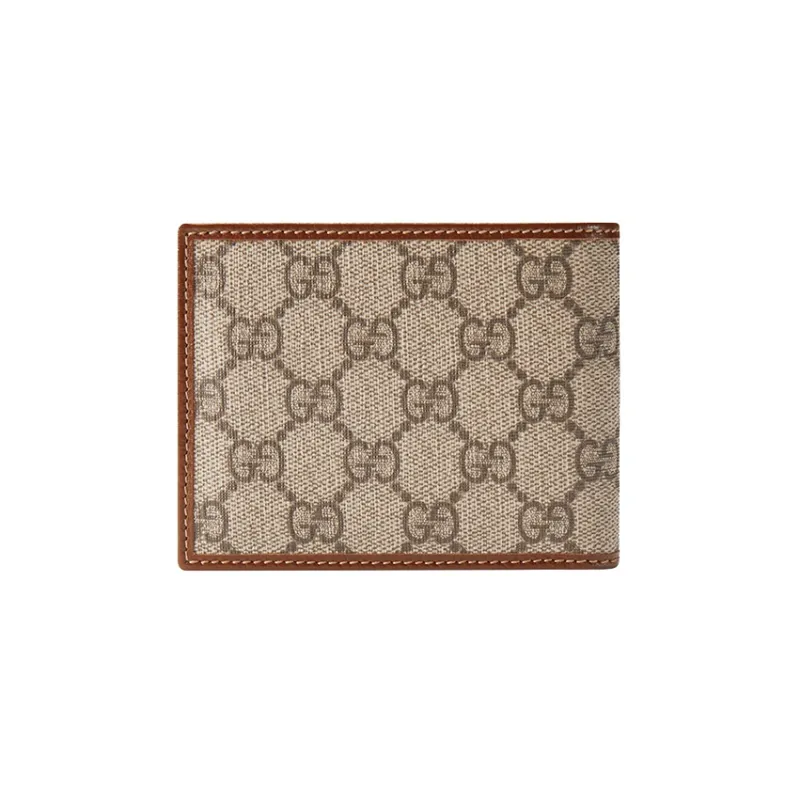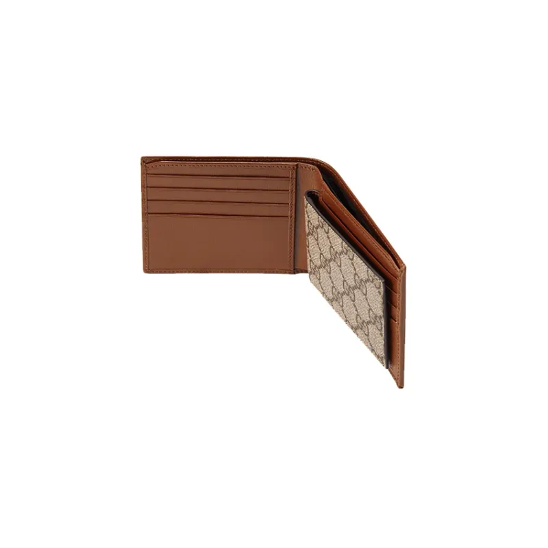GUCCI Canvas с кожаными вставками 8 слотов для карт укороченный двойной складной кошелек мужской цвет эбеновое дерево коричневый