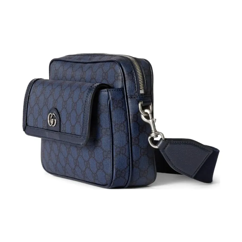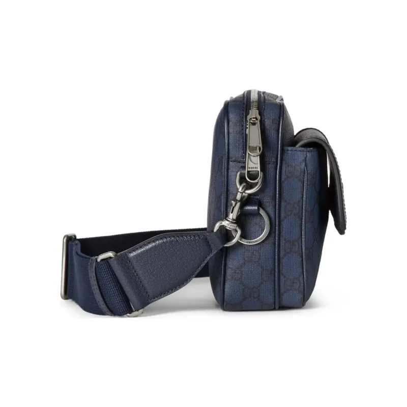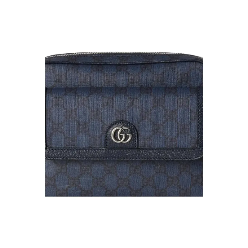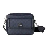 GUCCI Canvas с кожаными вставками обметка холщовая сумка сумка через плечо маленькая мужская темно-синий