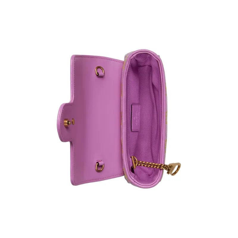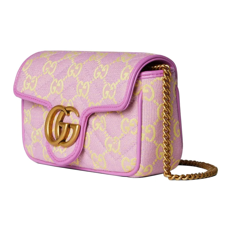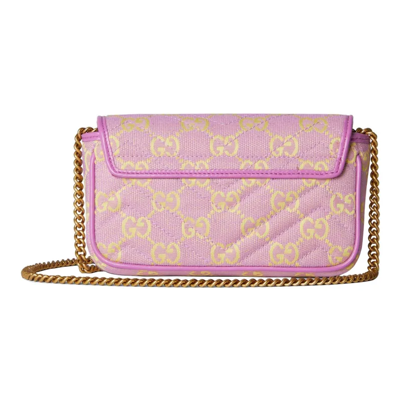 GUCCI Canvas с кожаными вставками обметка сумка через плечо женская светло-фиолетовая и желтая