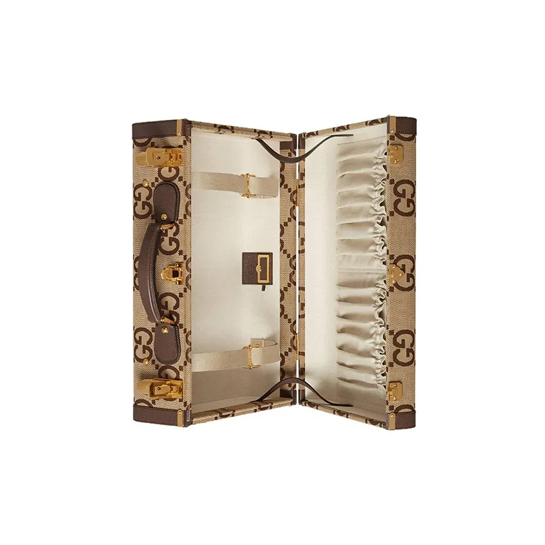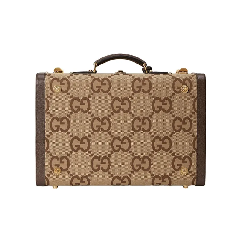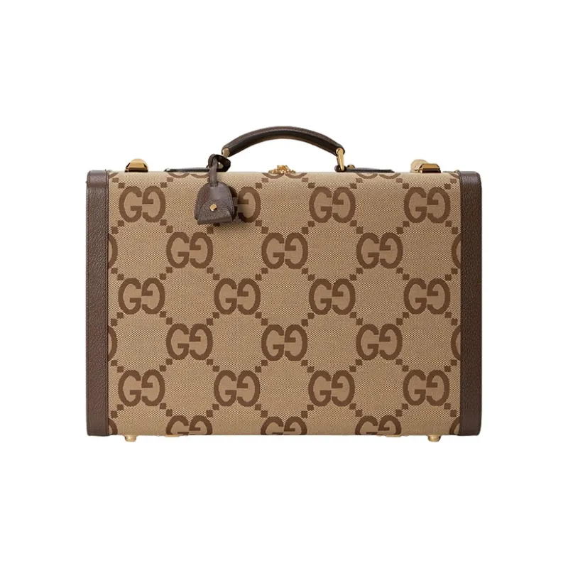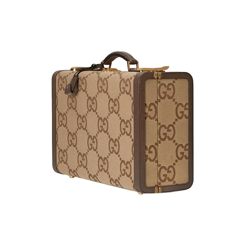 GUCCI Canvas с кожаными вставками обметка чемодан дорожная сумка твердый кейс средний мужской CAMEL