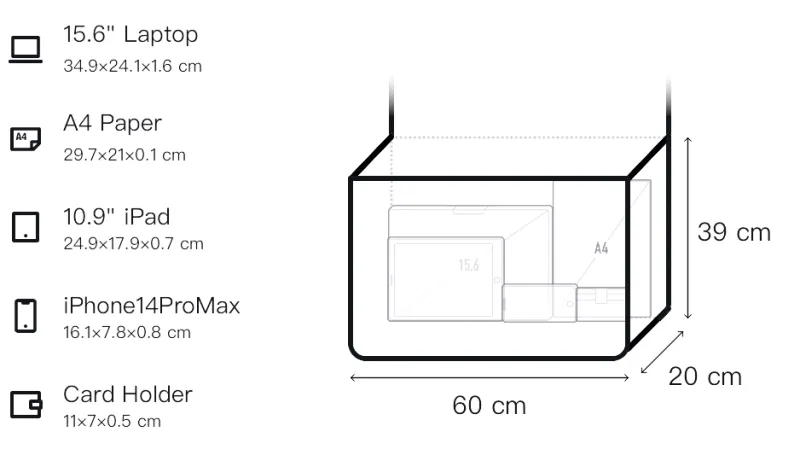 Д60*Ш20*В39см