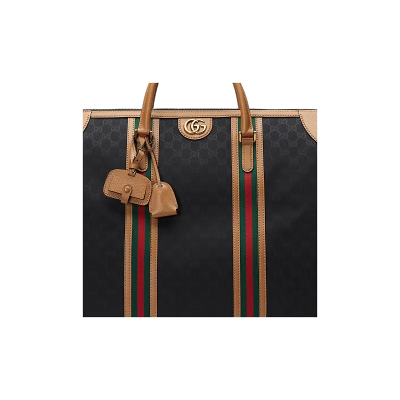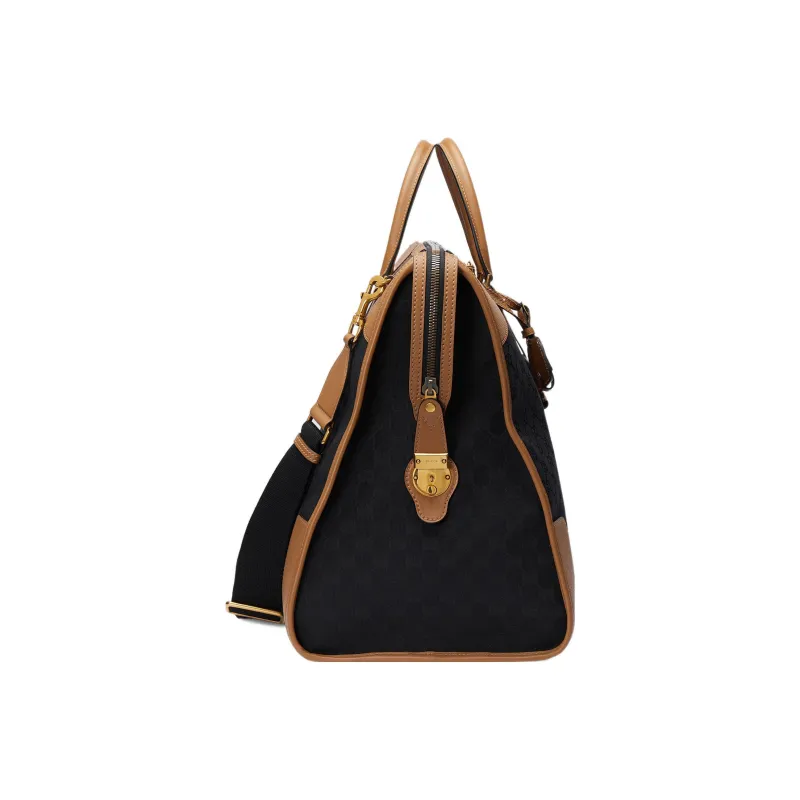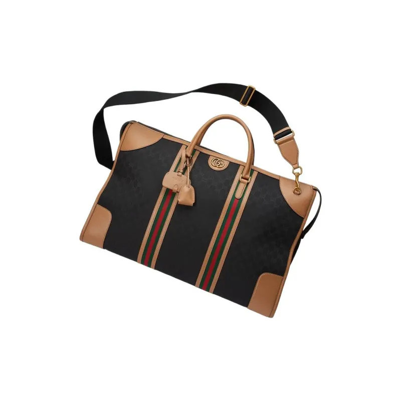Gucci Canvas с кожаными вставками дорожная сумка сумка через плечо сумка экстра-большая мужская светло-коричневая черная