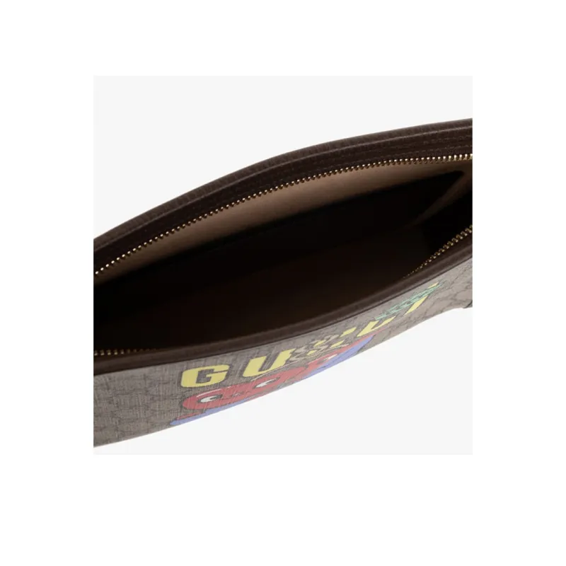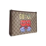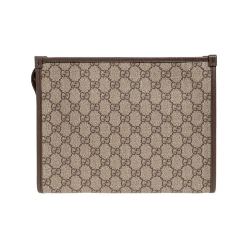 GUCCI Canvas с кожаными вставками сумка для туалетных принадлежностей клатч мужской бежевый и коричневый