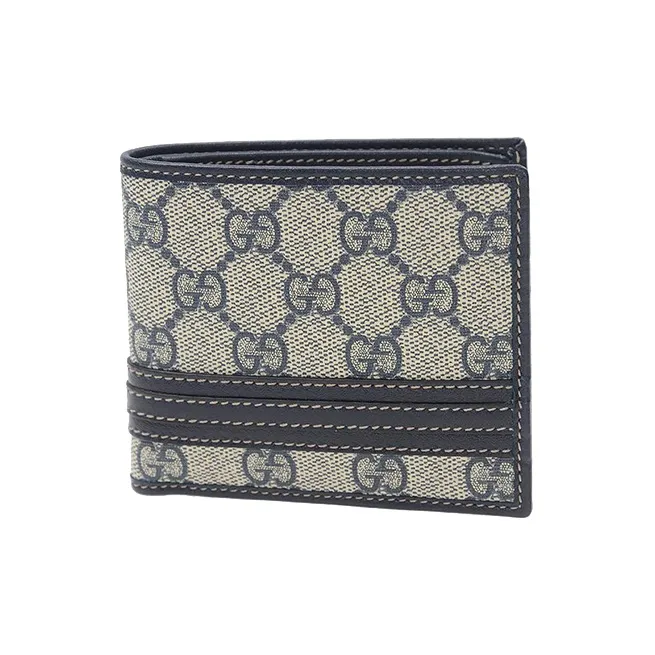 GUCCI Canvas с кожаными вставками кошелек мужской синий