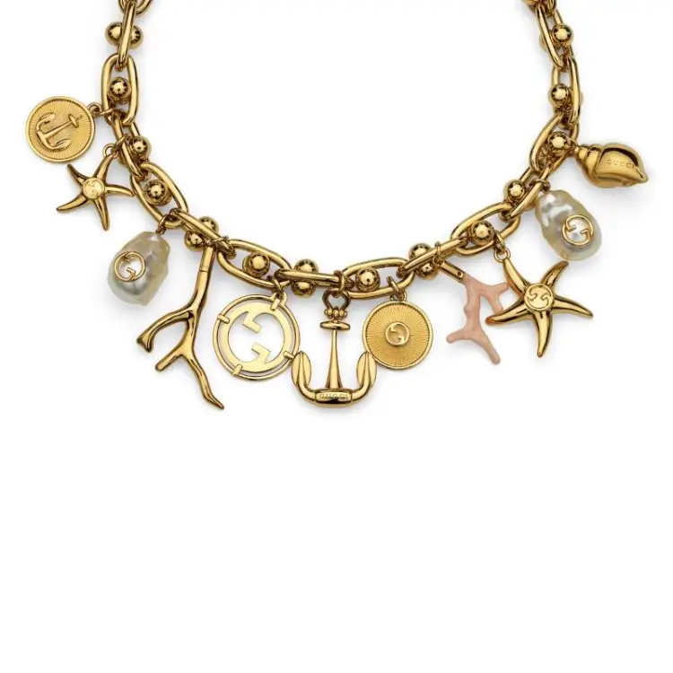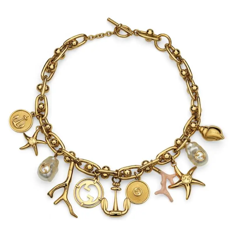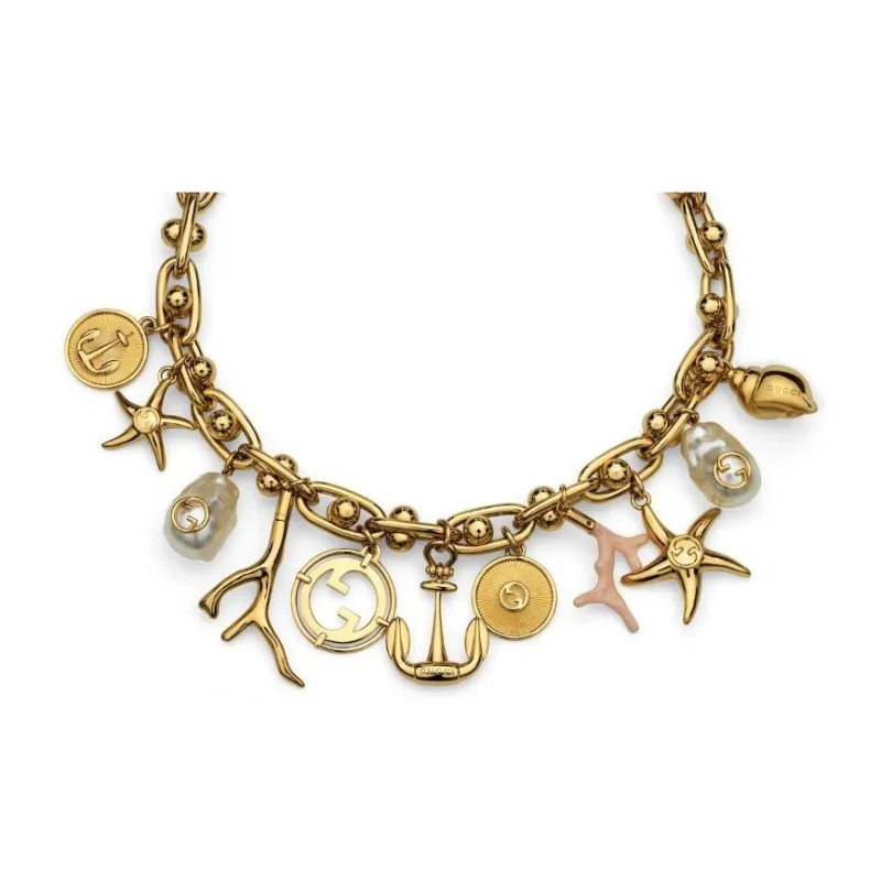 GUCCI Латунь Смола Жемчужные ожерелья Унисекс Золото