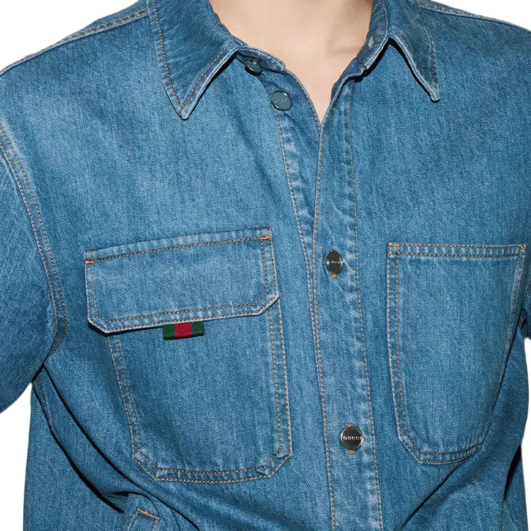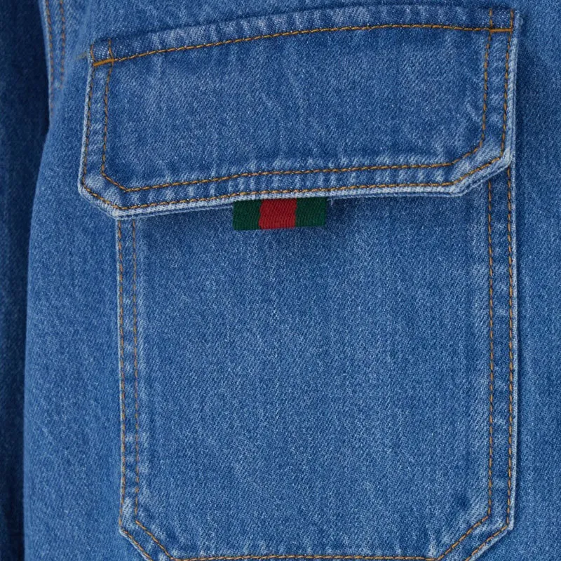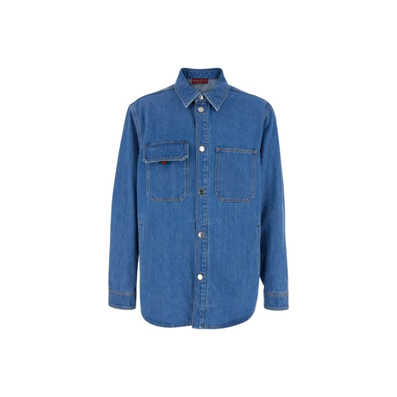 GUCCI FW25 Lido Коллекция Рубашка Мужская Синяя