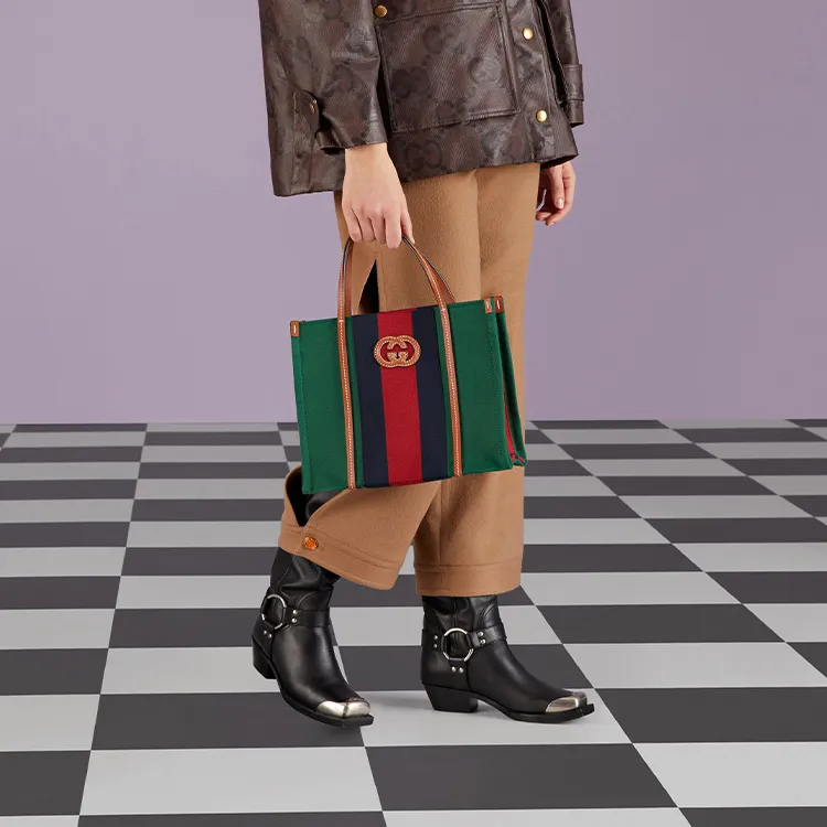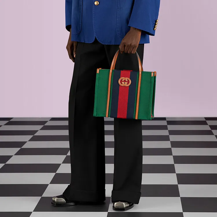 GUCCI Хлопковая ткань с кожаными вставками тоут сумка сумка для покупок сумка маленькая женская