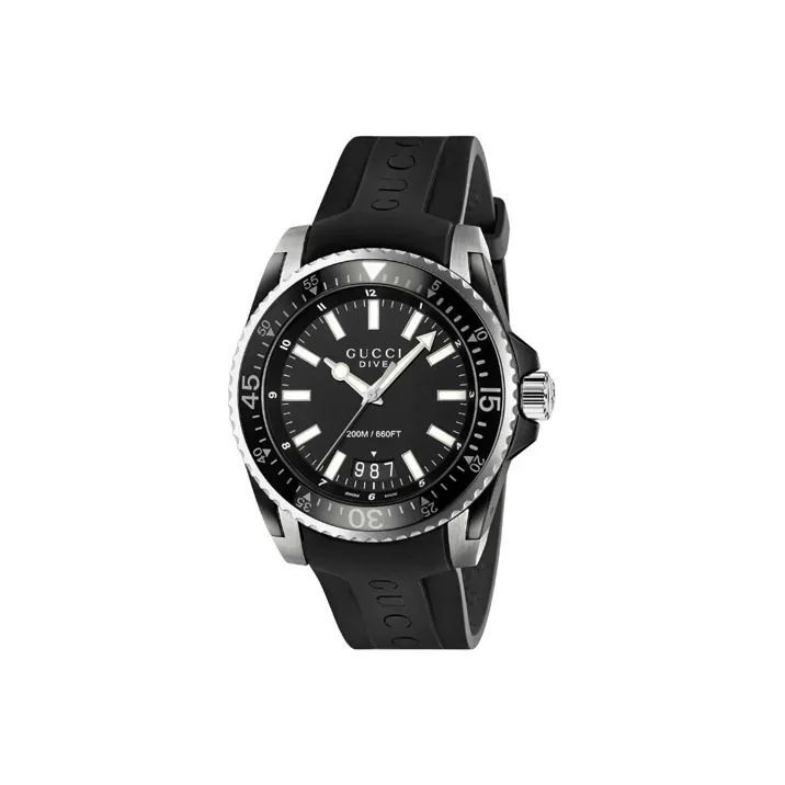 GUCCI Dive Collection Мужские часы Кварцевый механизм Резиновый ремешок Черный циферблат