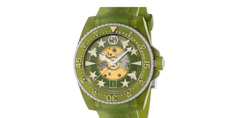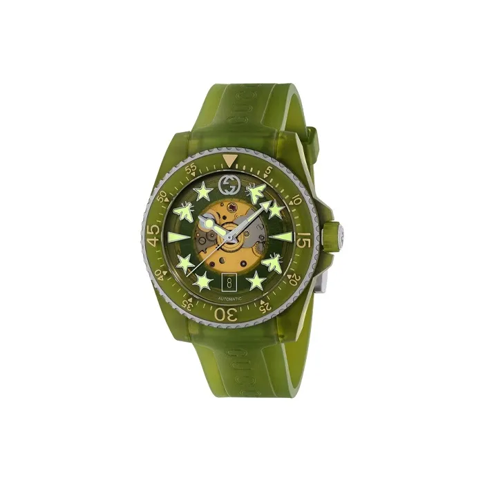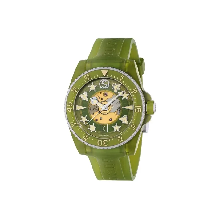 Gucci Dive Collection Часы Автоматический Механический Механизм Пластиковый Ремешок 40 мм Зеленый Циферблат Женские Часы