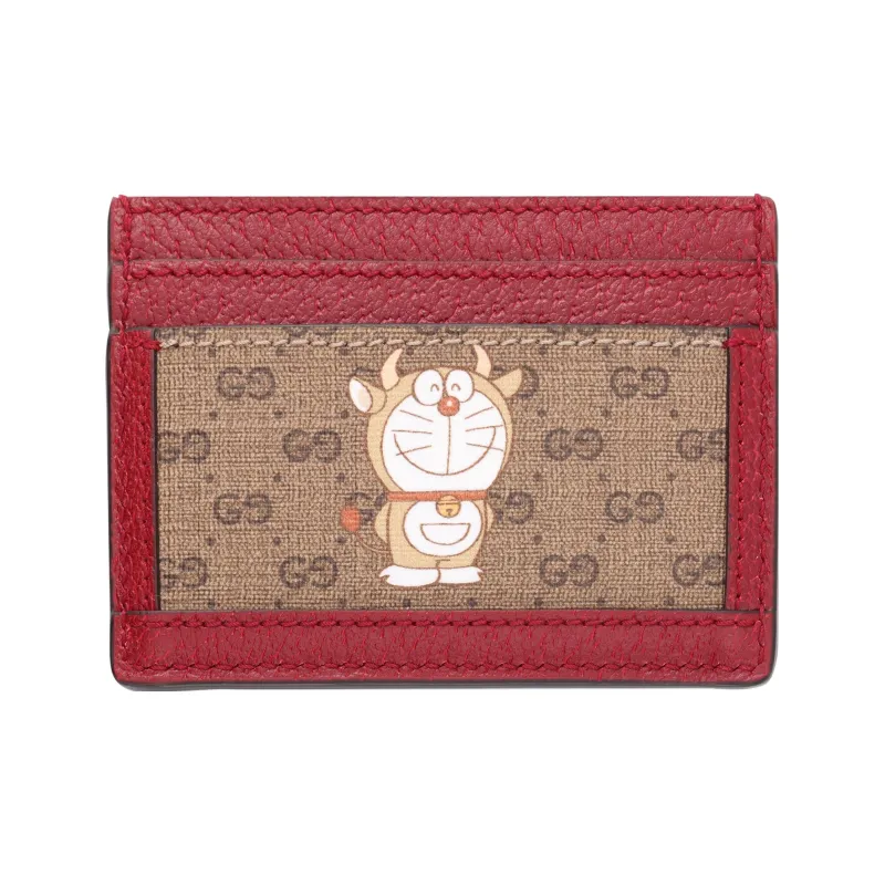 GUCCI Doraemon Collaboration Холст с кожей Картхолдер Унисекс Эбеновый Красный