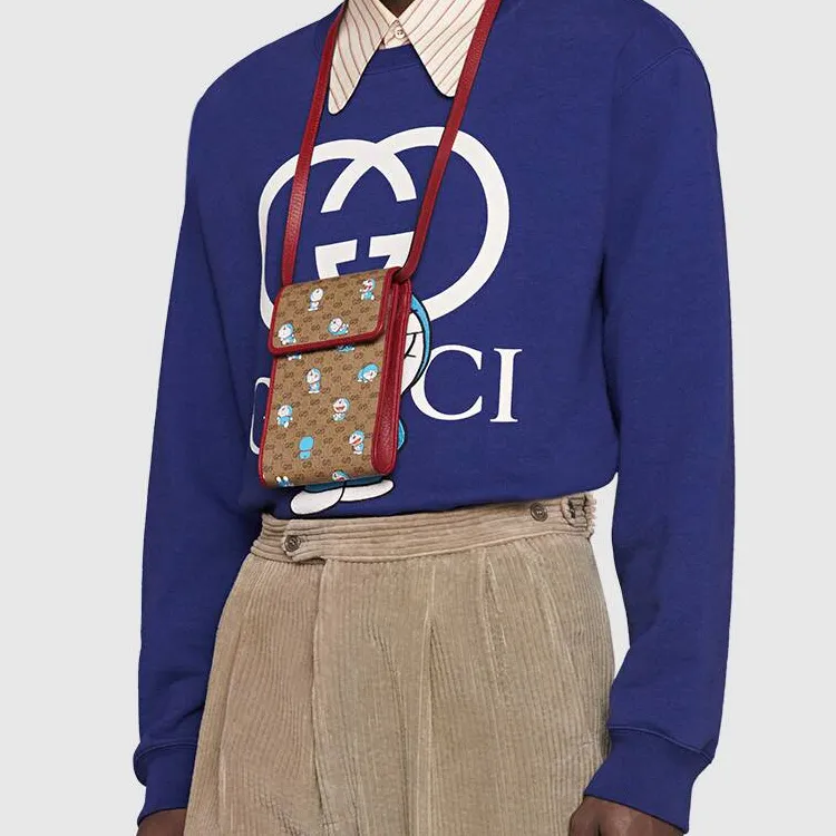 GUCCI Doraemon Collaboration Холст с кожей Чехол для телефона Сумки через плечо Сумка через плечо Унисекс