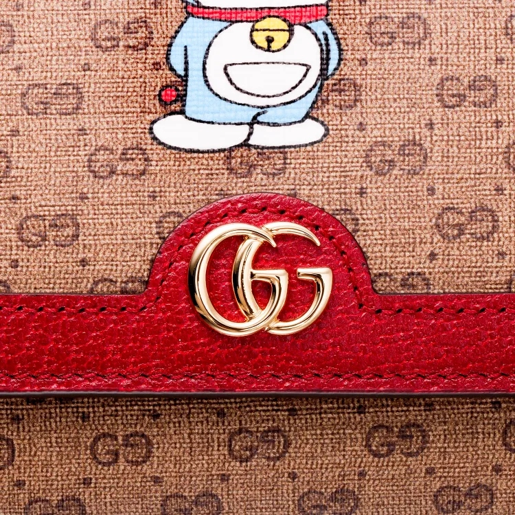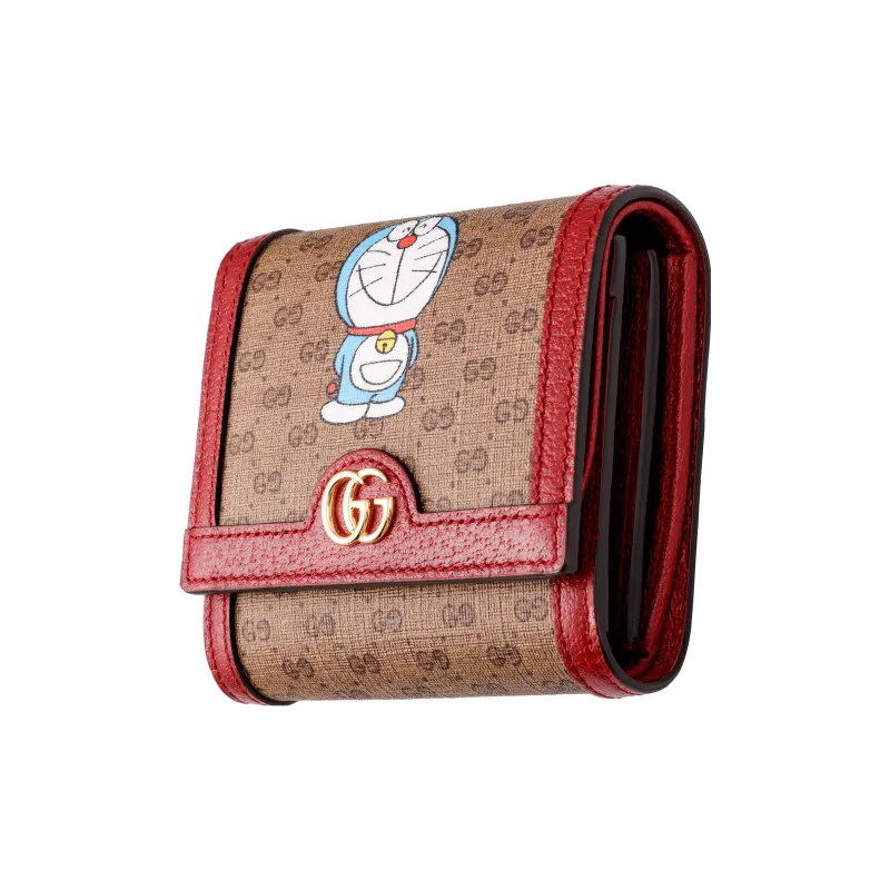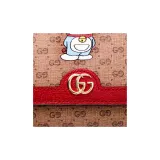 GUCCI Doraemon Collaboration Холст с кожей Кошелек Унисекс Красный Эбеновый