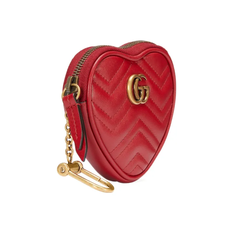 GUCCI Double G кожаный кошелек для монет женский красный