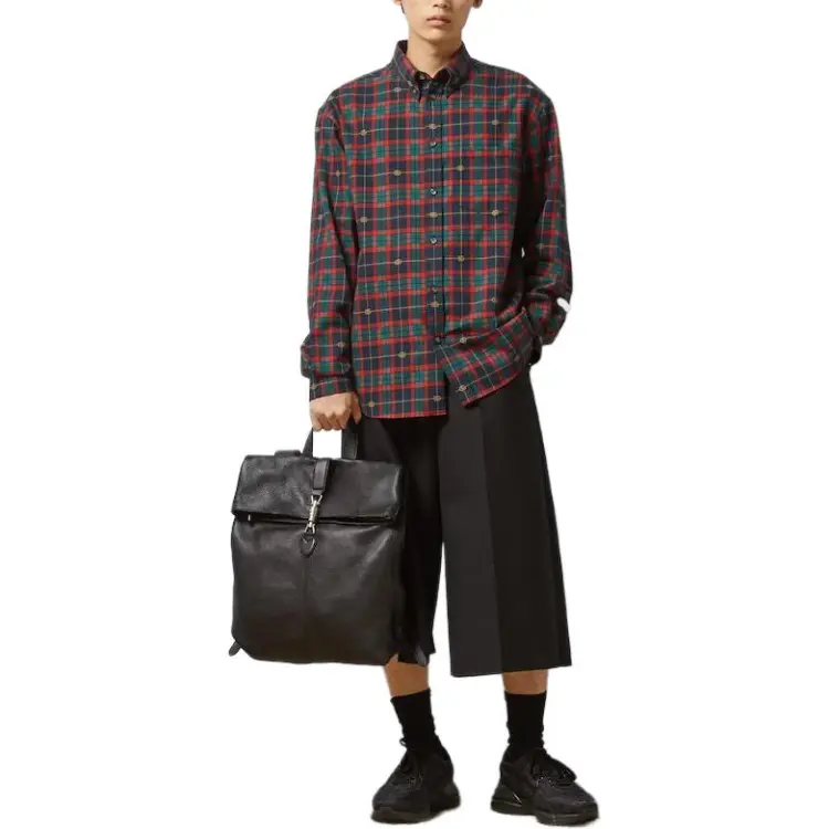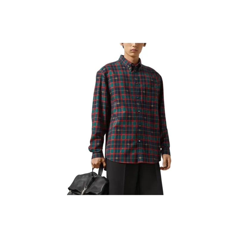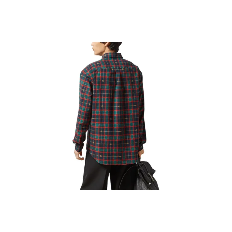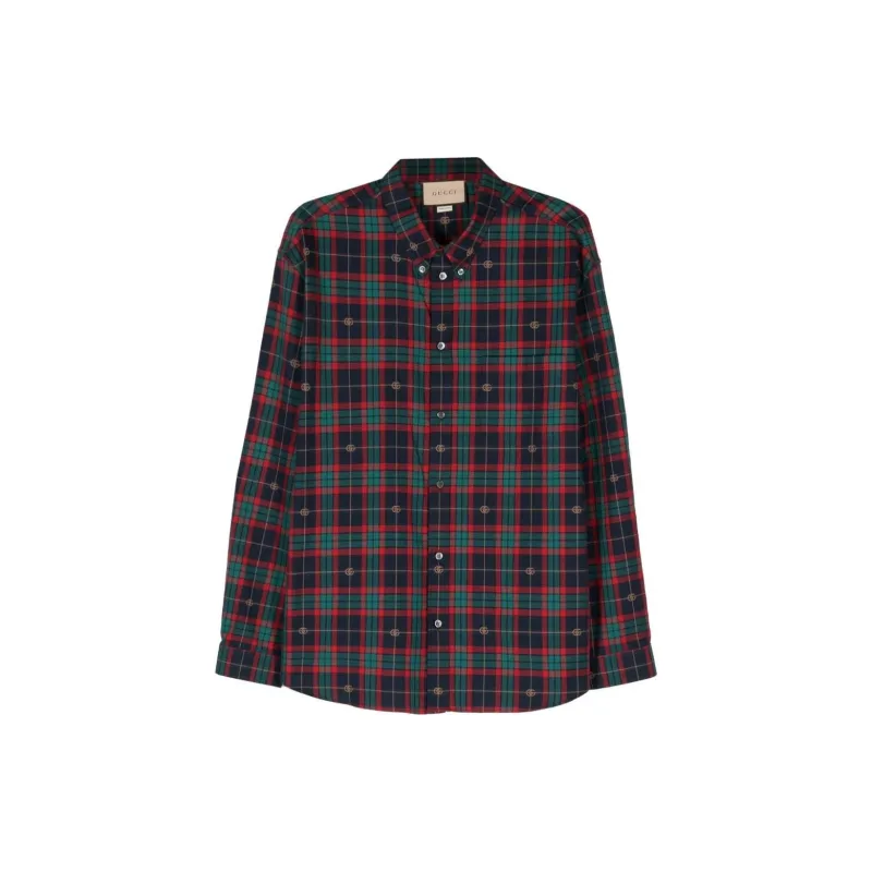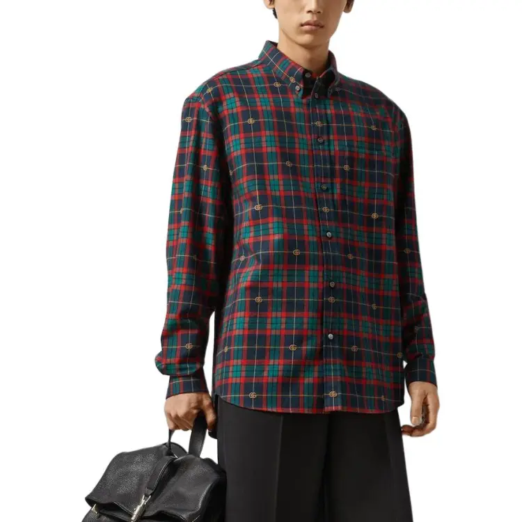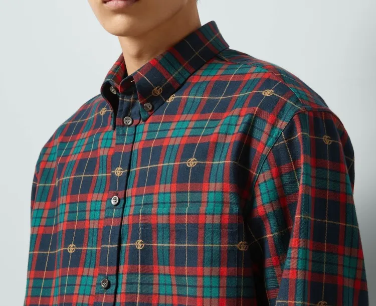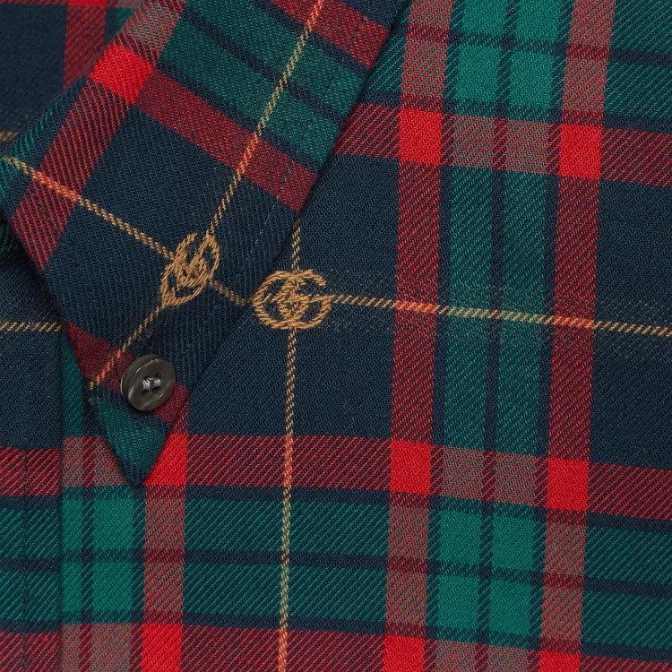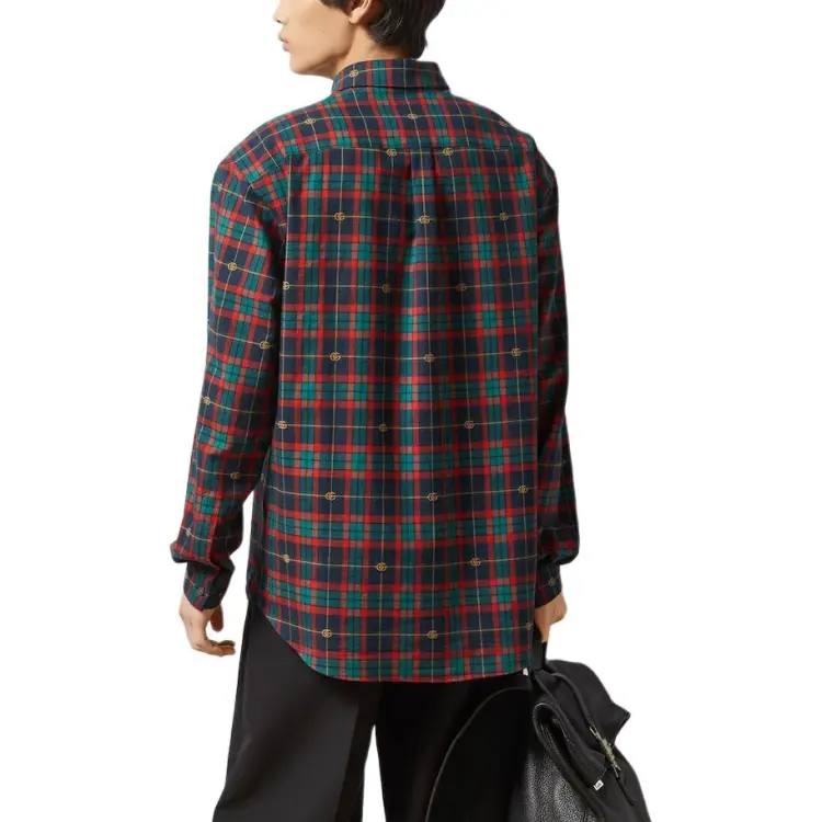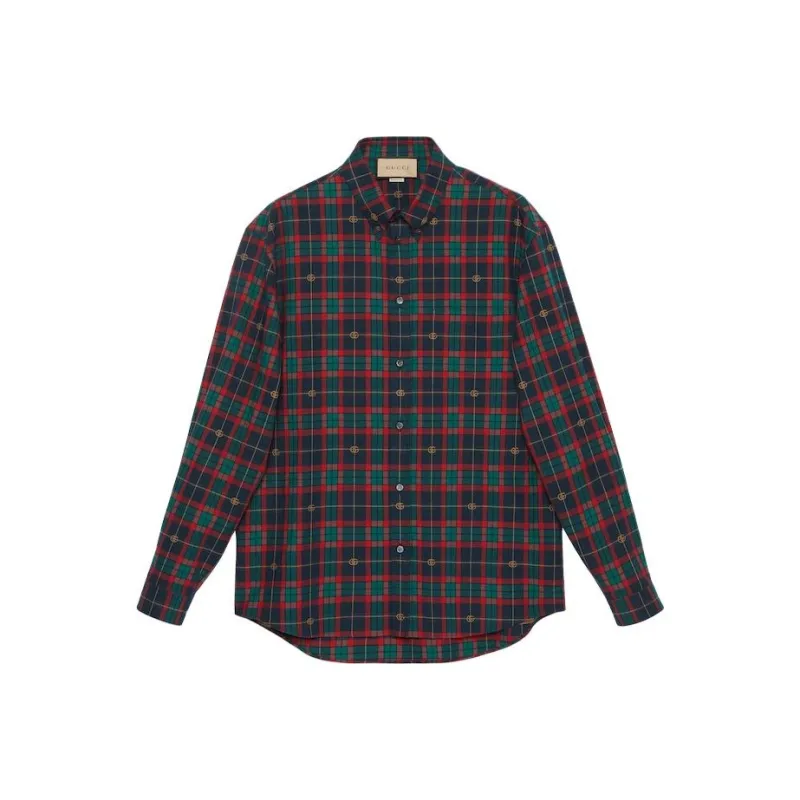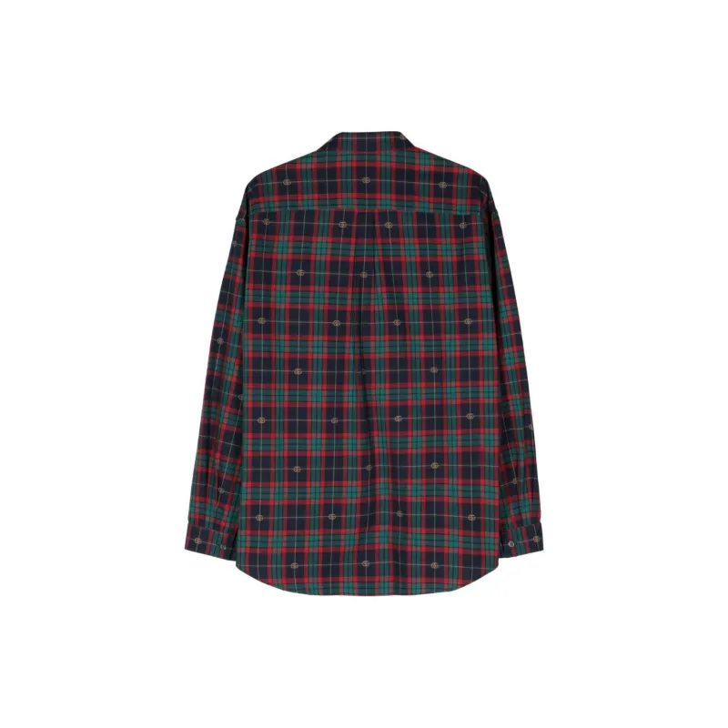 GUCCI Двойная G Рубашка из хлопка в шотландской клетке мужская многоцветная