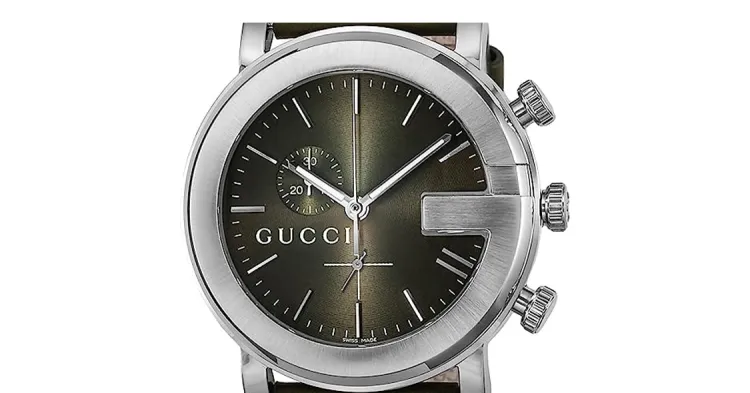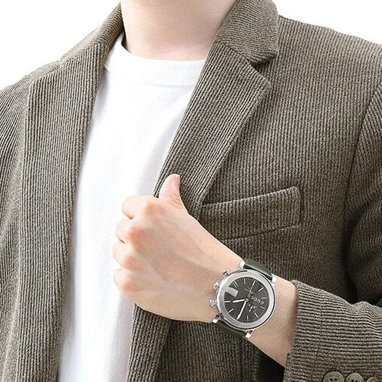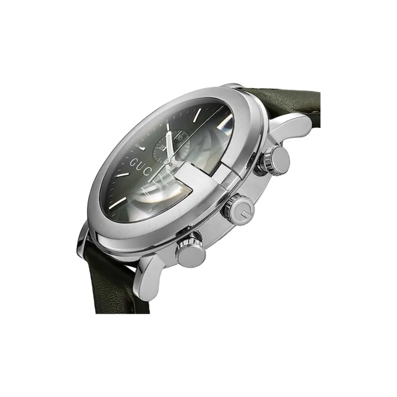 GUCCI из серии Chrono Collection Мужские наручные часы Кварцевый механизм Ремешок из коровьей кожи 44 мм Зеленый циферблат