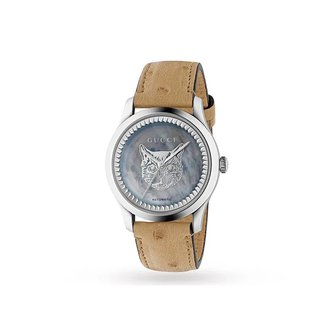 GUCCI G Timeless Collection Women's Watch Автоматический Механический Механизм Естественная Кожа Ремешок Серебристый Циферблат