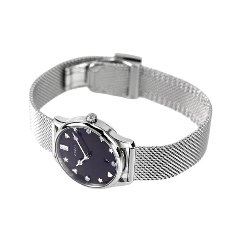 GUCCI G Timeless Collection Женские часы Кварцевый механизм Ремешок из нержавеющей стали Черный циферблат