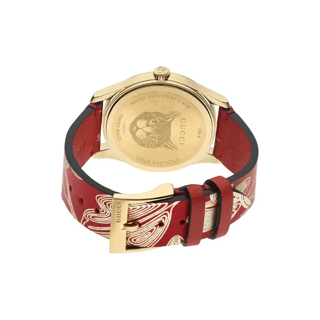 GUCCI G Timeless Collection Кварцевые часы Кожаный ремешок Красный циферблат Женские часы
