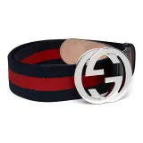 GUCCI Коровья кожа тканевый ремень мужской темно-синий ширина 4 см