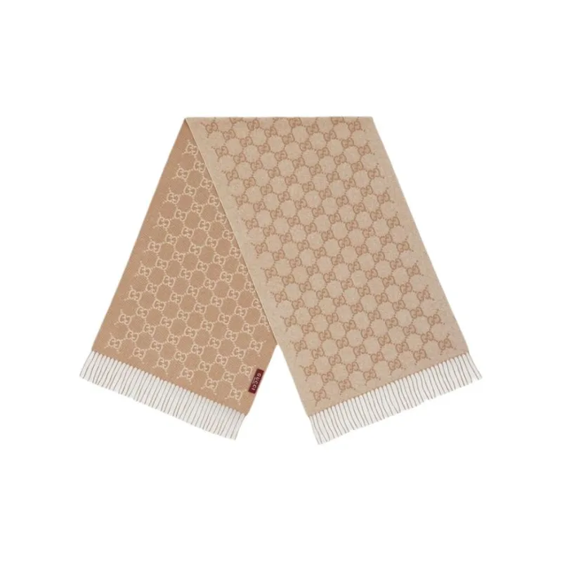 GUCCI Кашемир Люрекс Нить Ткань Вязаные Шарфы Унисекс Белый Бежевый