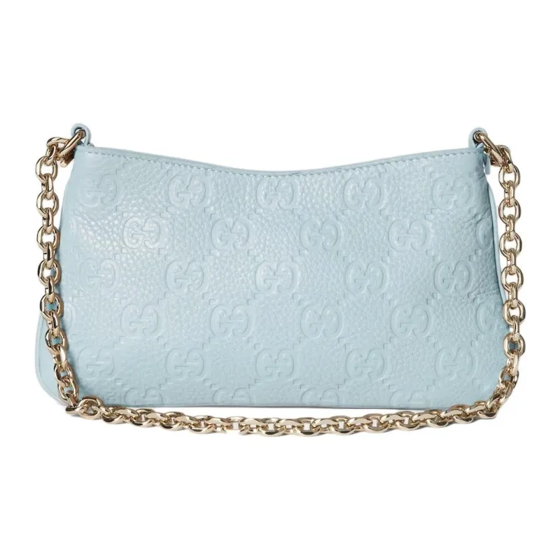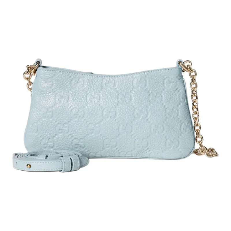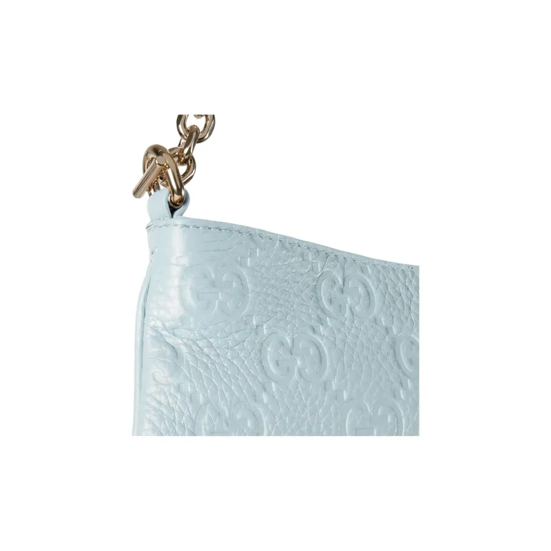 GUCCI GG Emblem GRAIN LEATHER Сумка через плечо Extra Mini Женская Светло-синяя