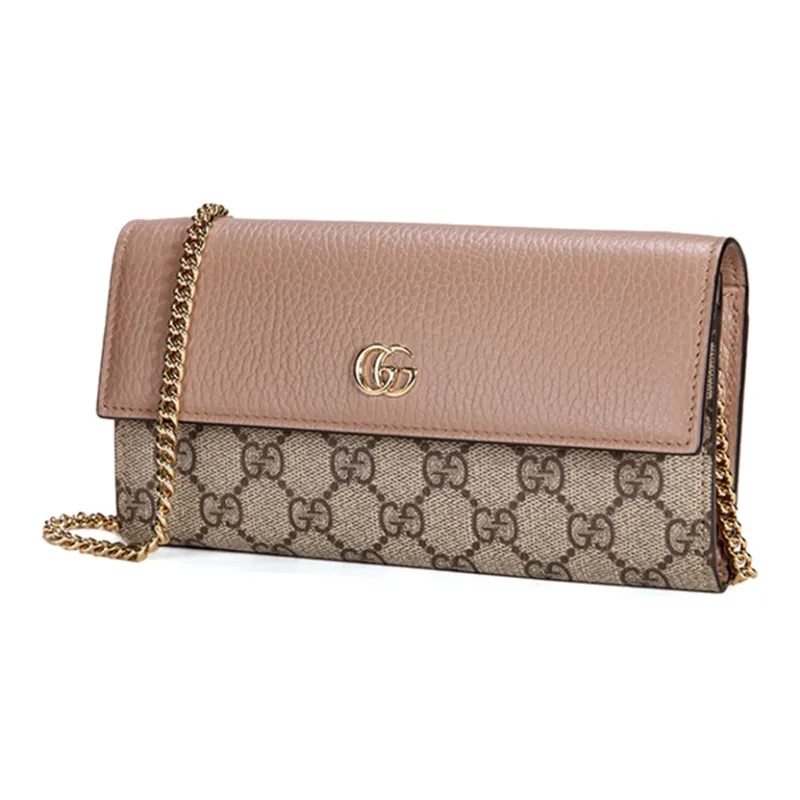 GUCCI GG Marmont Холст и Кожа Сумка через плечо Сумка на плечо Женская Светло-Коричневая и Розовая