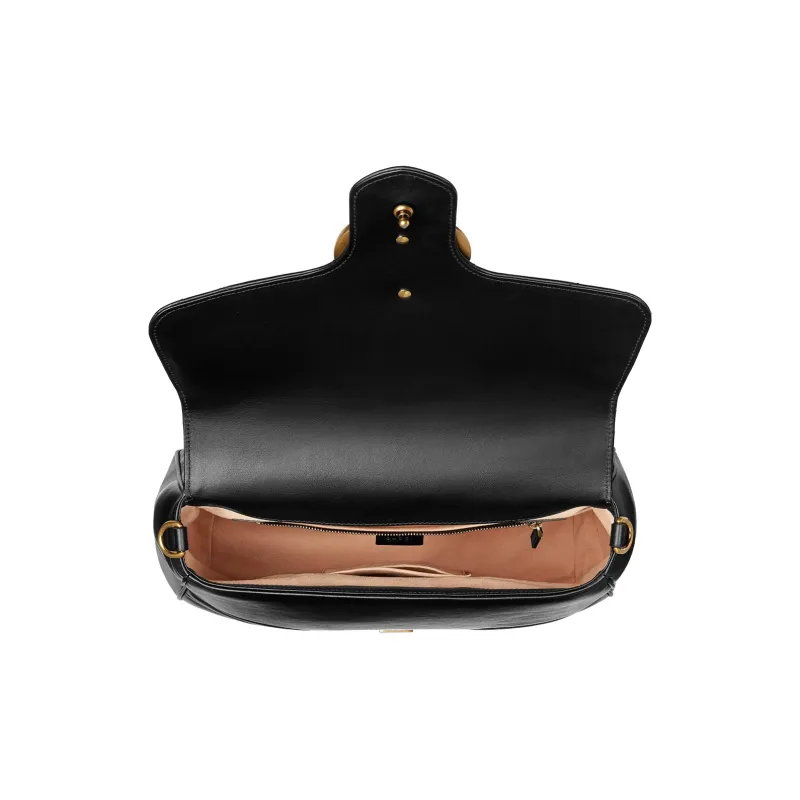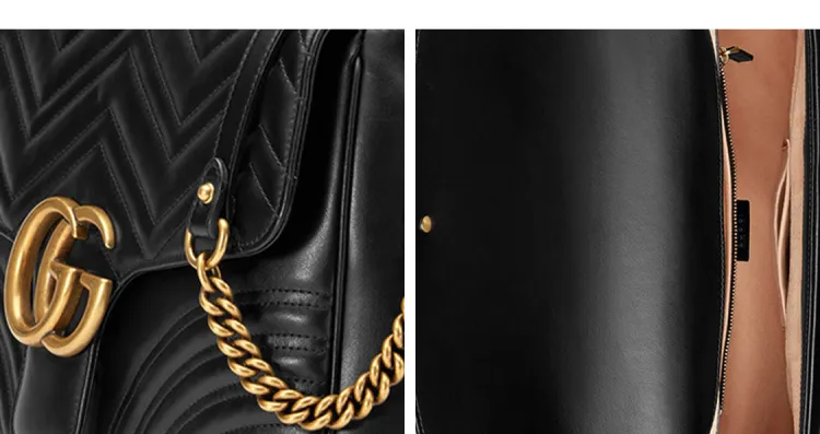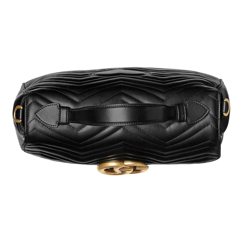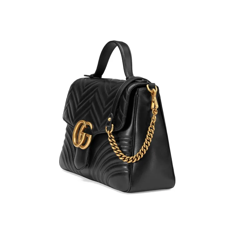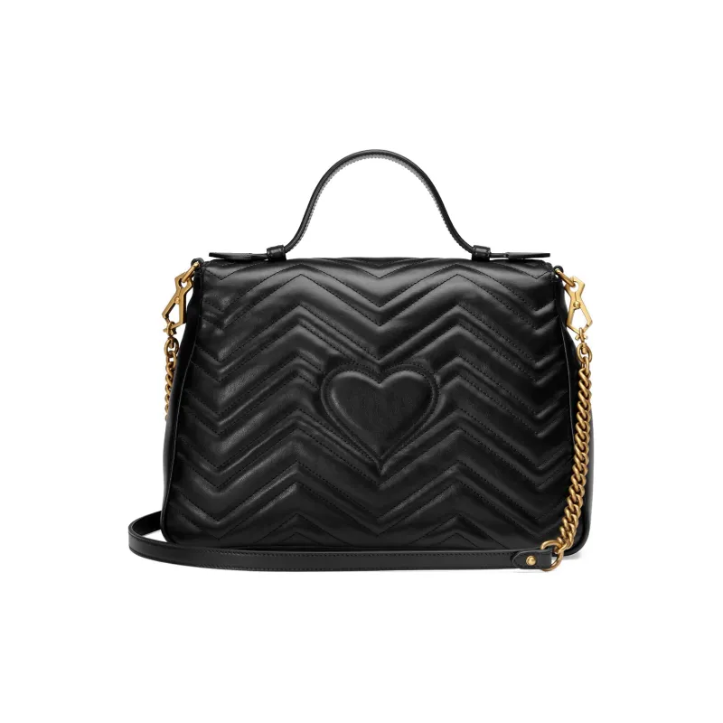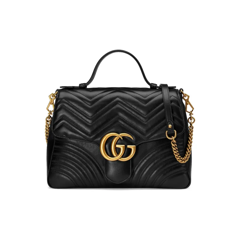 GUCCI GG Marmont Quilted Кожа Цепочка Сумка через плечо Сумка Сумка среднего размера Женская Черная
