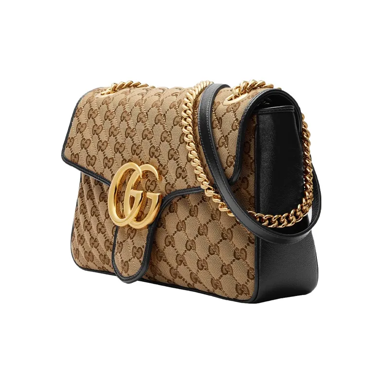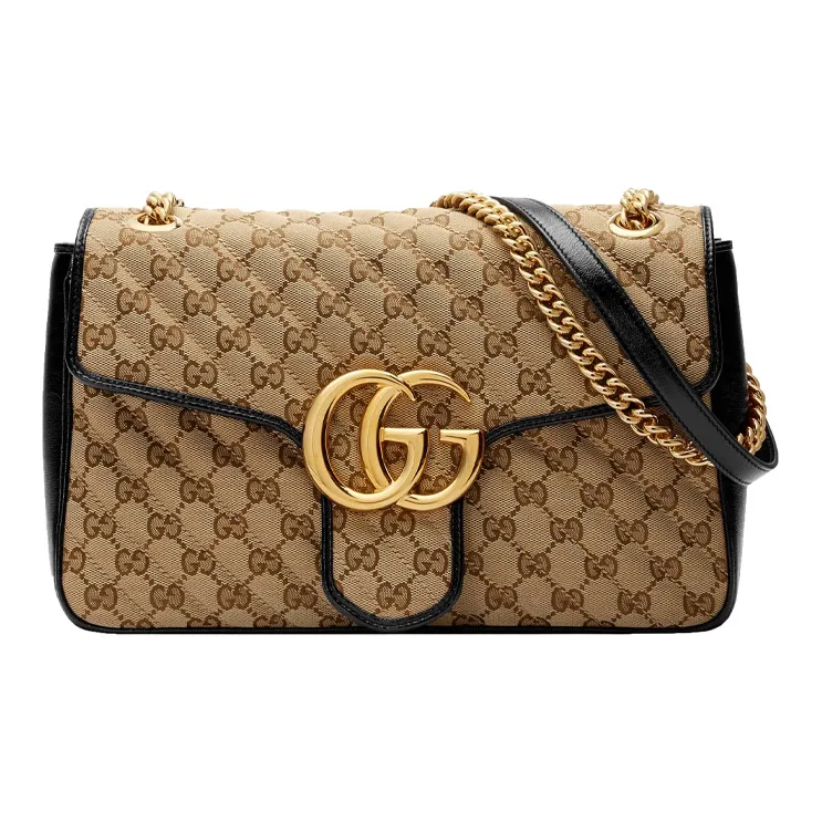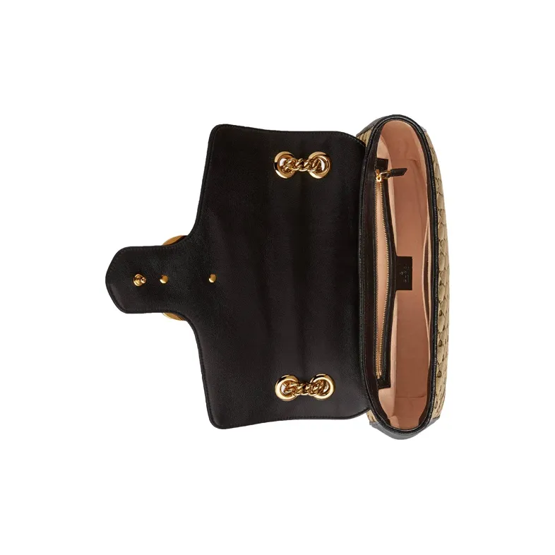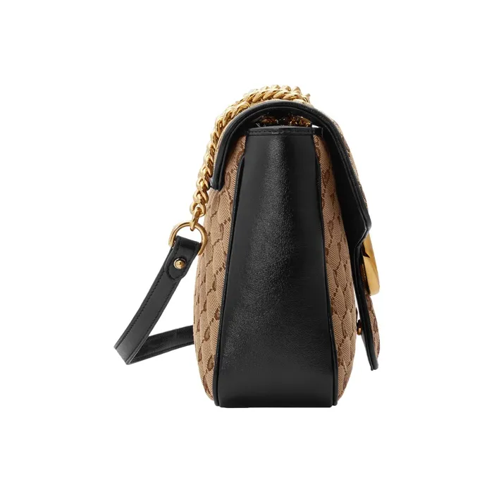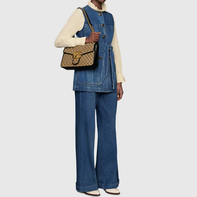 GUCCI GG Marmont Сумка через плечо из холста с кожей средний размер женский цвет эбеновый и черный
