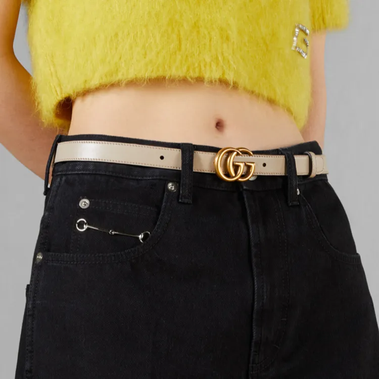 GUCCI Marmont Кожаные ремни Женские Серый Ширина 2CM