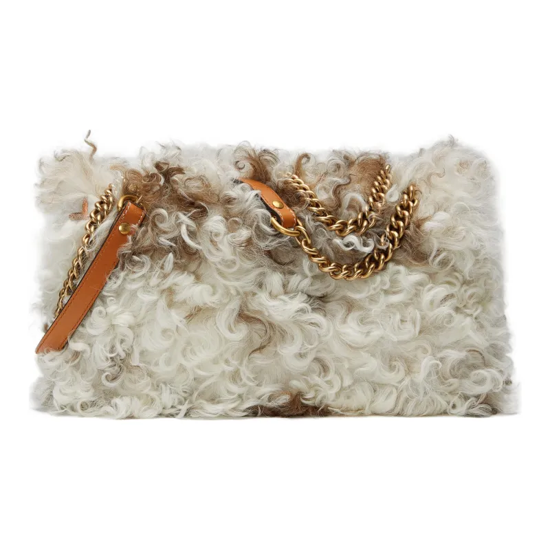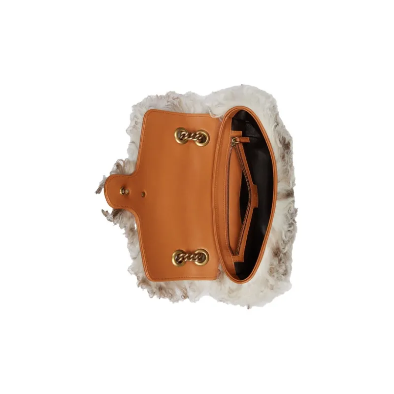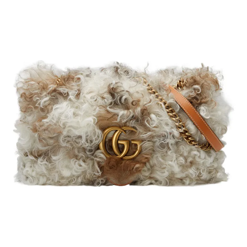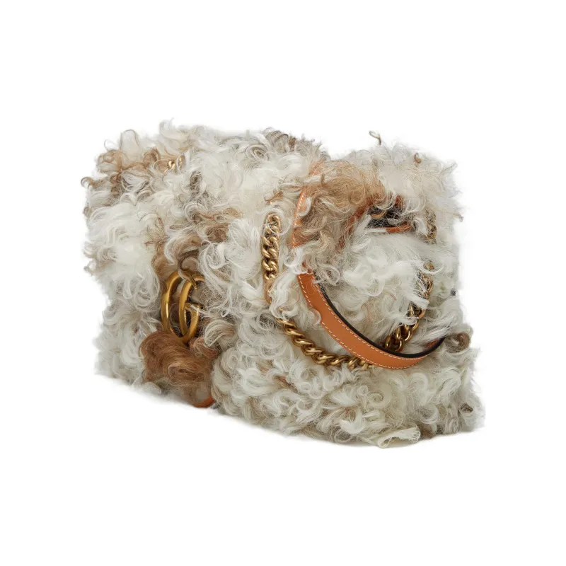GUCCI GG Marmont Shearling Leather Trim Crossbody Bag Shoulder Bag Women's