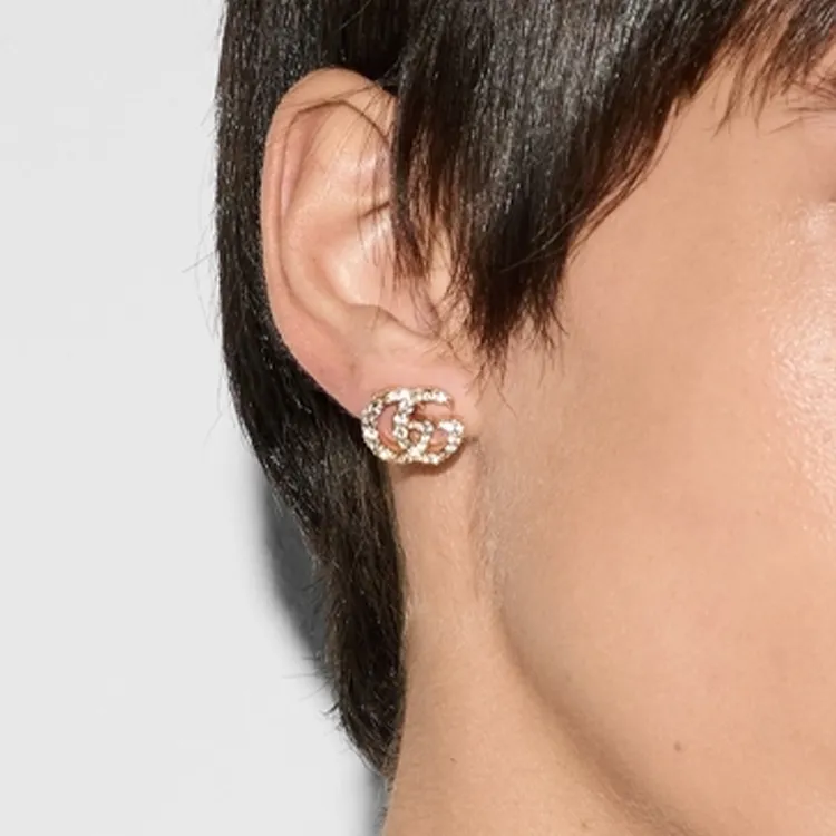 GUCCI Металл Искусственный кристалл Серьги Унисекс Золото