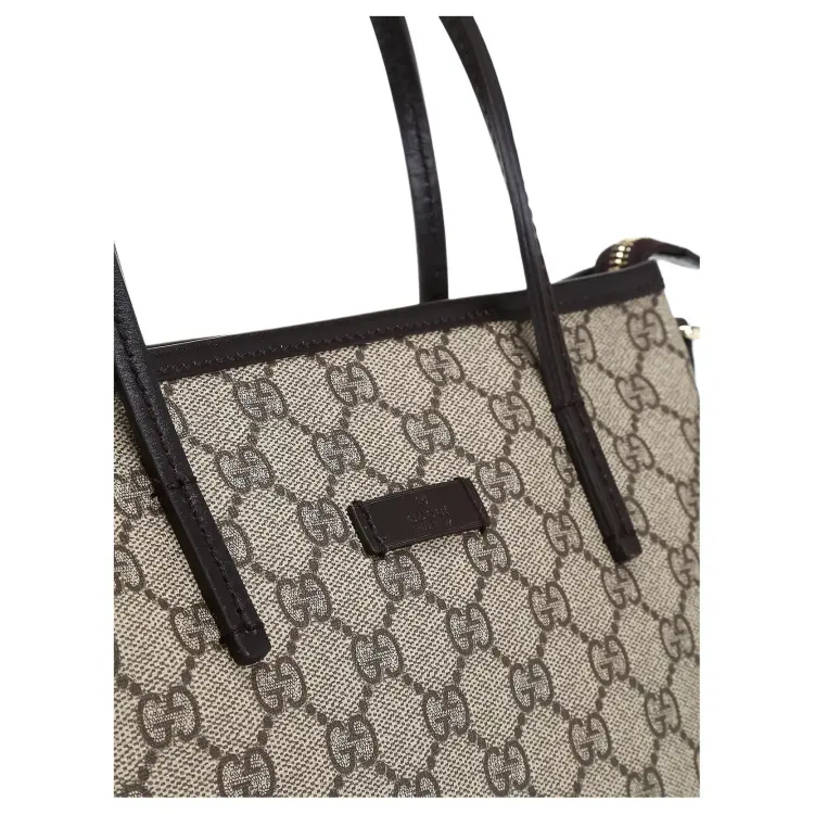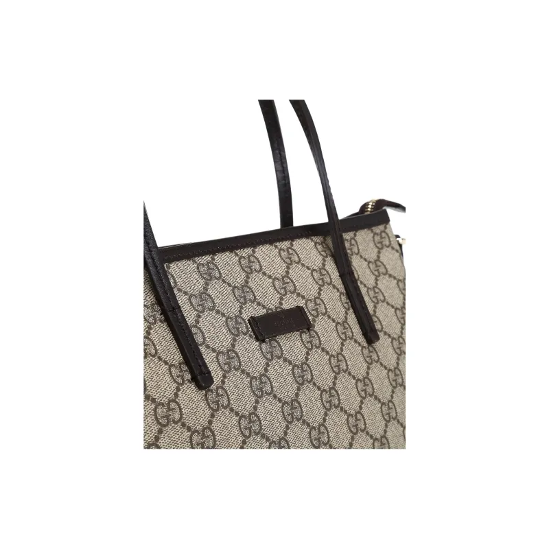 GUCCI GG Supreme Нейлон Тоут Сумка Сумка для покупок Сумка через плечо Сумка Маленькая Женская Бежевая и Эбеновая