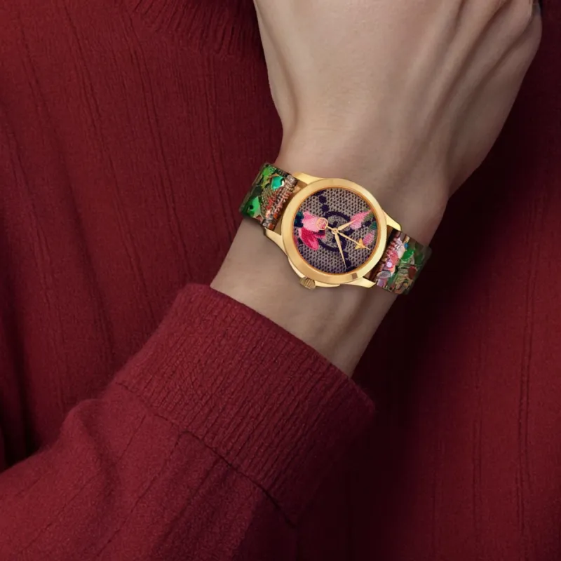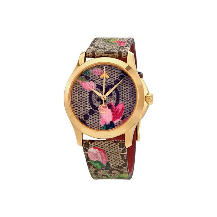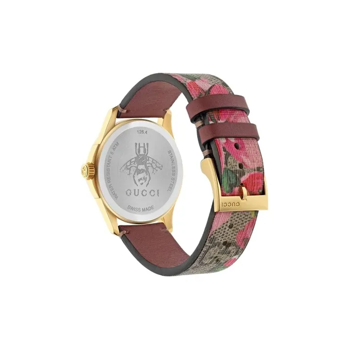 GUCCI Gold 3D Embroidered Bee Collection Наручные часы Кварцевый механизм Холст Ремешок Коричневый Циферблат Унисекс