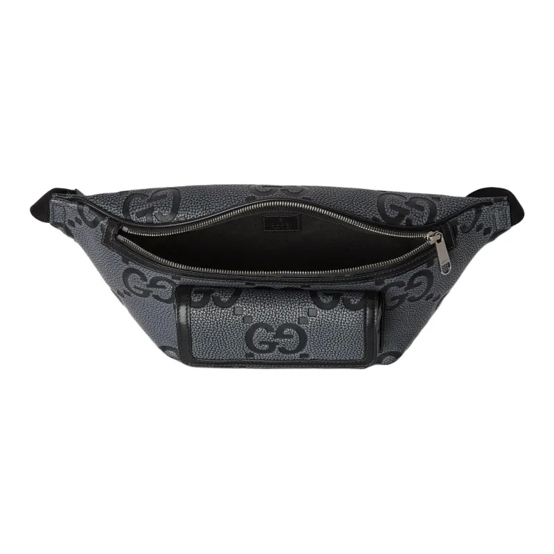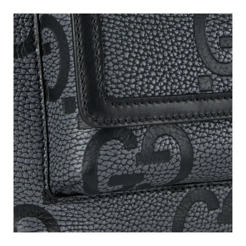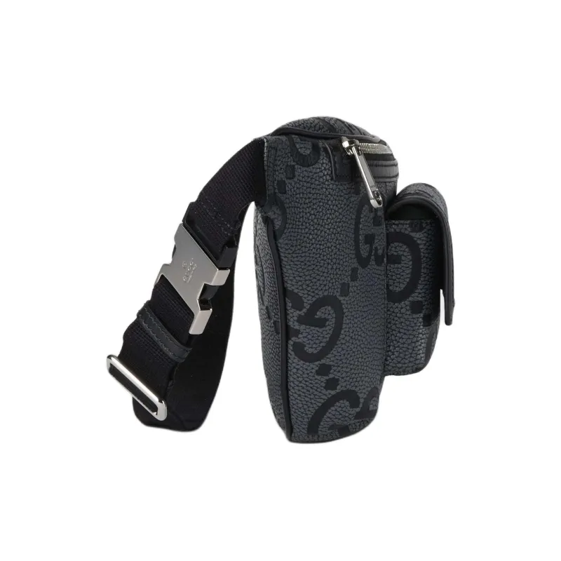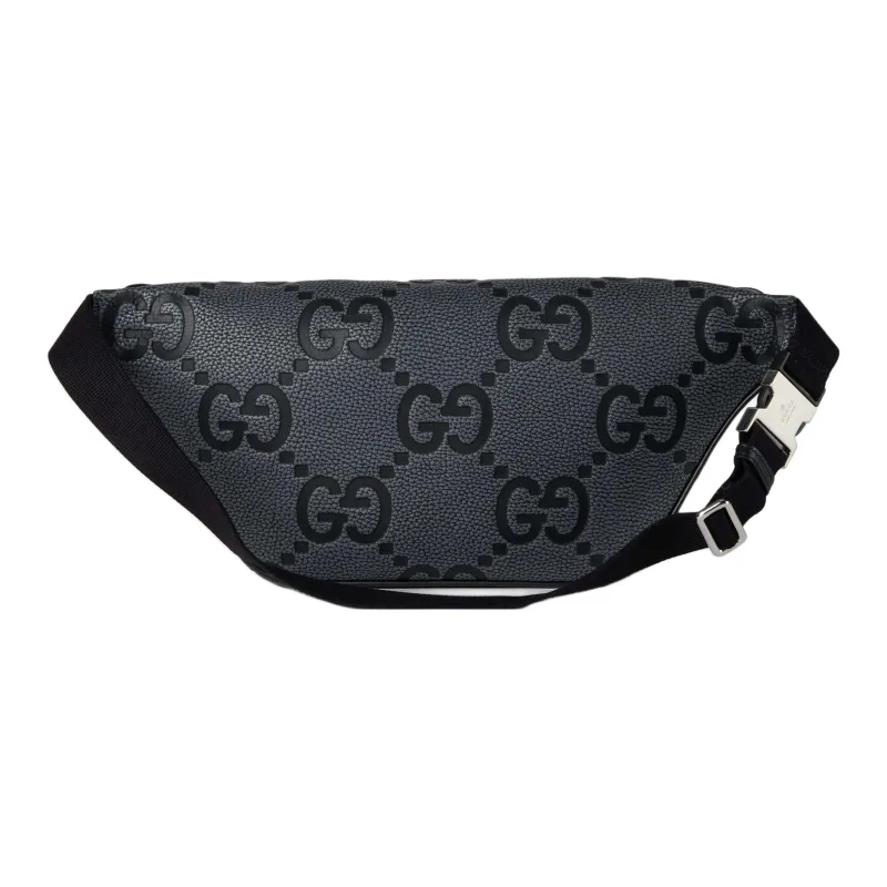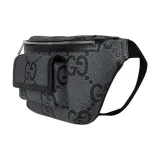 GUCCI GRAIN LEATHER Бананка среднего размера мужская серо-черная